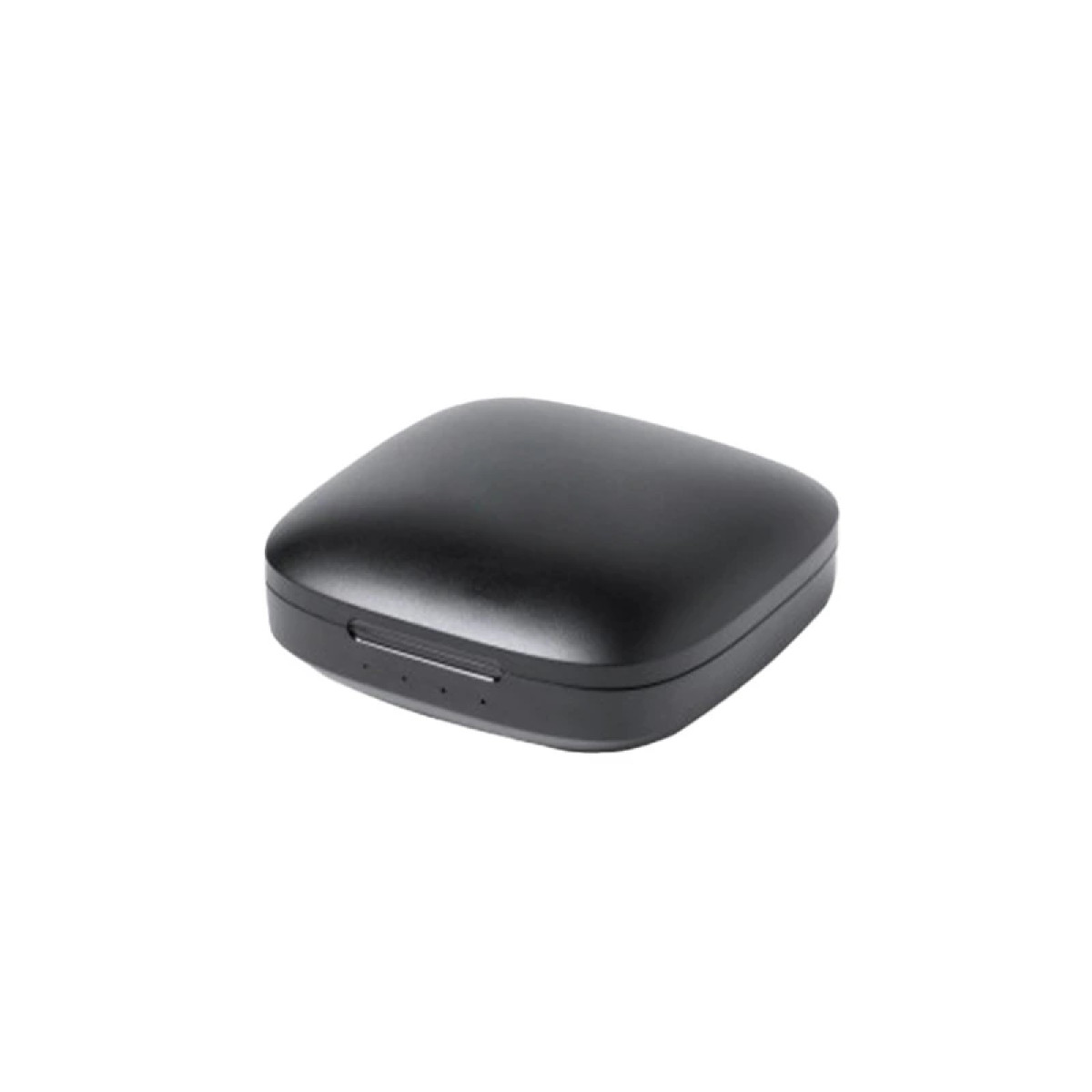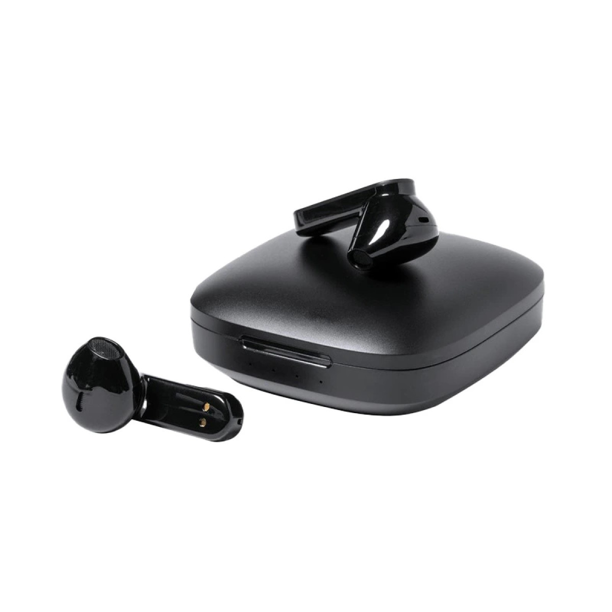 Auriculares inalámbricos estilo earbuds, fabricados en RABS. Cada auricular cuenta con un botón touch que permite subir y bajar el volumen, contestar y finalizar llamadas, reproducir y pausar música, cambiar a la siguiente o anterior canción. Tienen tecnología Bluetooth 5.3, una duración de batería de aproximadamente 4 horas y un estuche de carga de 300 mAh, el cual se carga a través de un cable usb c. Los auriculares vienen dentro de una caja de cartón junto a su manual de instrucciones y cable cargador. Dimensiones: 5,65 x 5,65 x 2,3 cm. Reuseme.