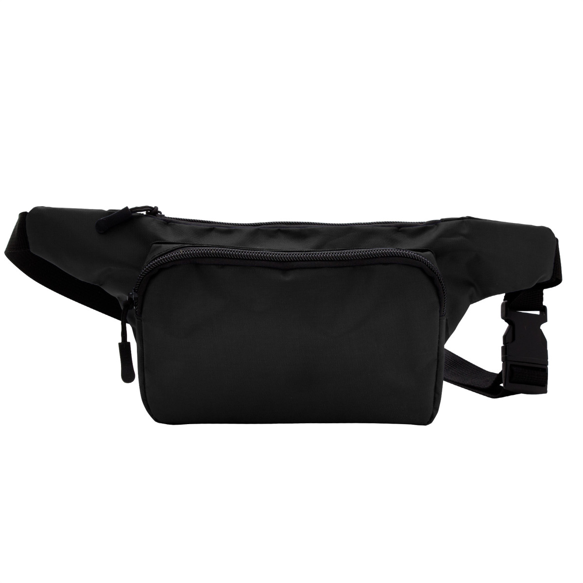 Comodidad en movimiento.Banano con 2 compartimentos con cierre. Amplio bolsillo frontal. Correa ajustable con herrajes plásticos. Cierres y tiradores de cierre plásticos de color negro.Medidas: 34 x 14 x 7,5 cm.