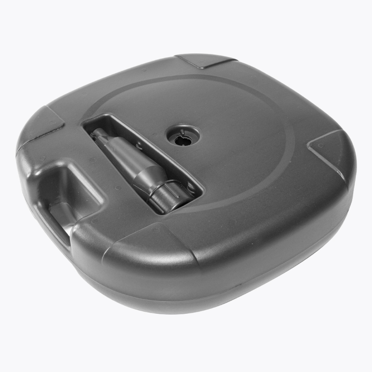 Base plástica cuadrada rellenable (con arena o piedrecilla, para darle mayor peso), con una capacidad total de 18kg