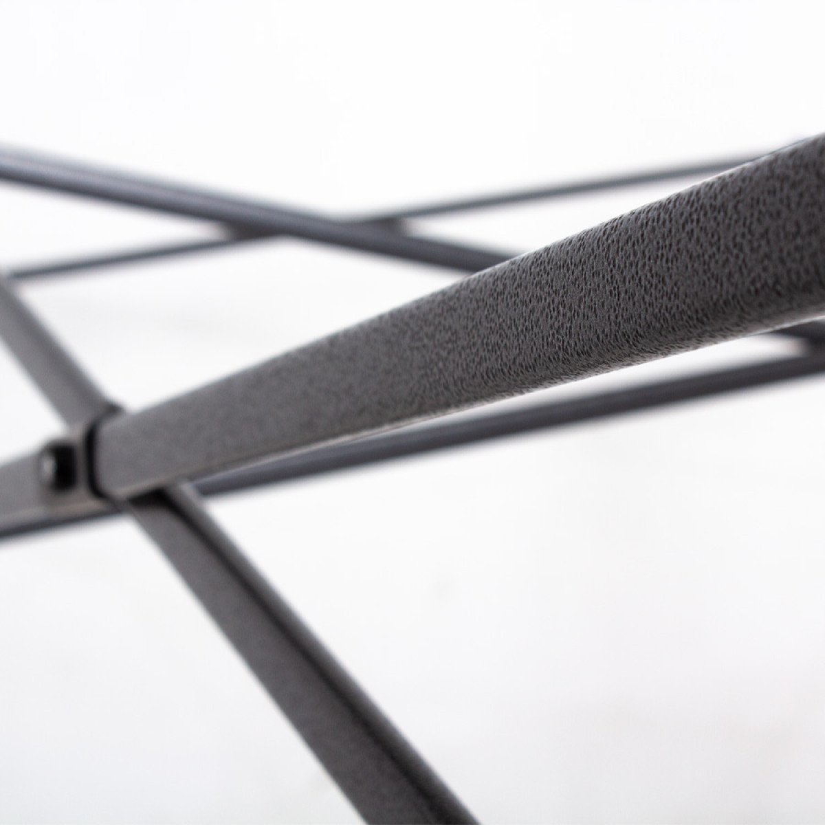 Base plegable de Acero esmaltado, para toldo araña de 2 x 2 m. Altura 2.1m. Se entrega plegada en una caja de cartón de 150 x 20 x 20 cm (11kg).