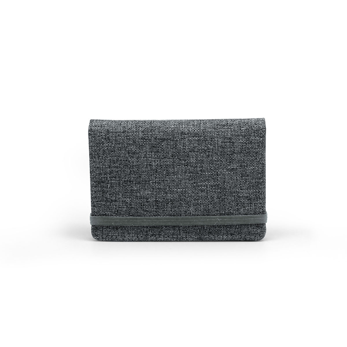 11,2 x 7,9 x 1,8 cm. Poliéster y Nylon. Billetera con tarjetero, fuelle interno, espacio guarda tarjeta transparente y elástico para un mejor cierre.