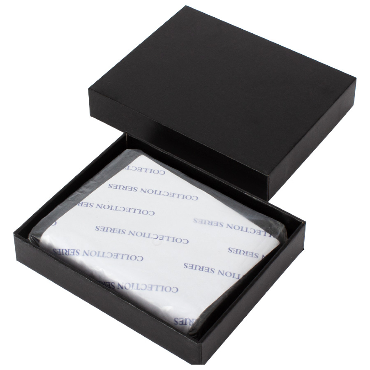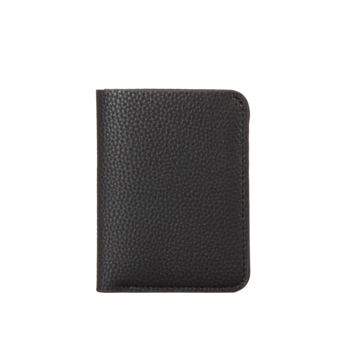 Billetera de eco-cuero, formato vertical, modelo "LAM". Contiene 5 compartimentos interiores. Presentación en bolsa frozen y caja de cartón forrado negro opaco.