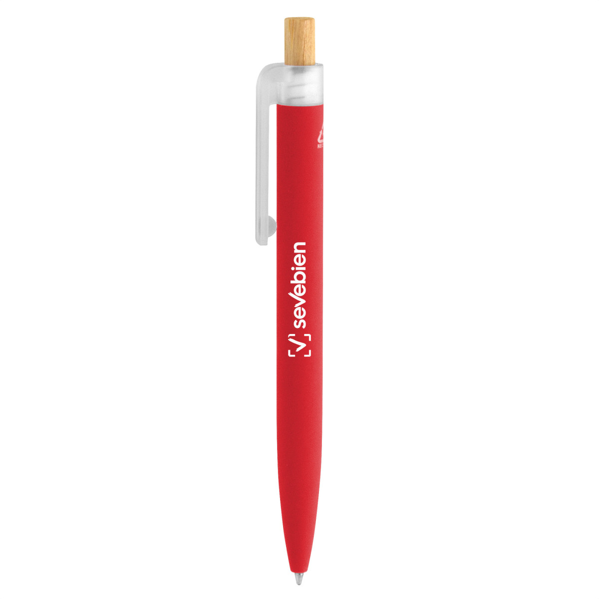 Fusiona lo moderno, elegante y ecológico.Bolígrafo retráctil. Cuerpo de alumio en diferentes colores acabado mate. Botón pulsador de bambú. Clip plástico transparente con terminación frosty. Medidas: 1,6 x 13,4 cm.