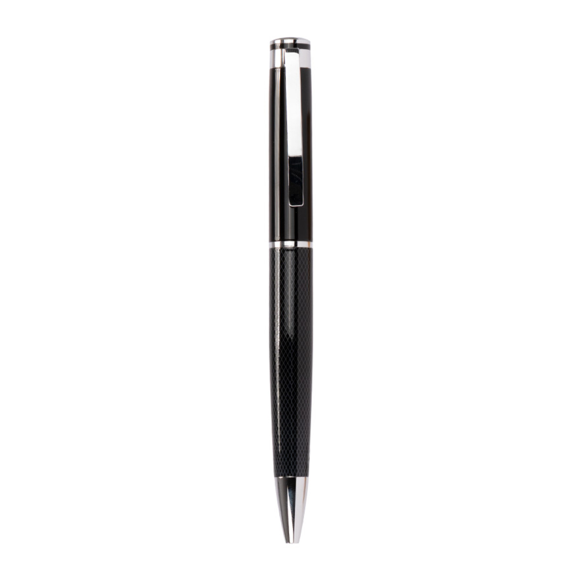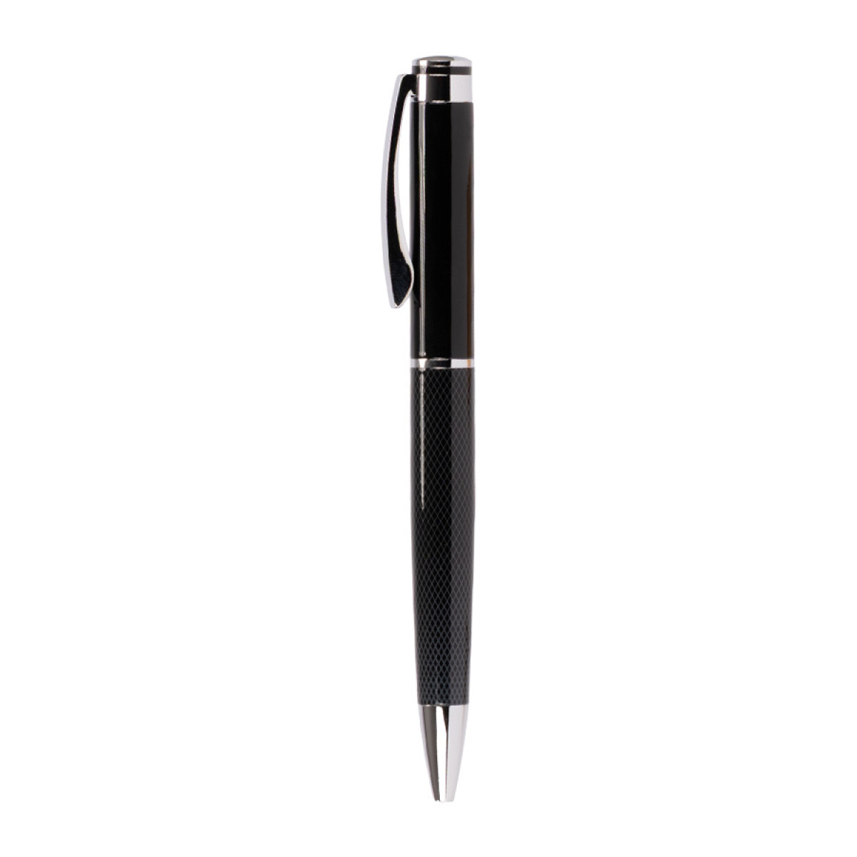 Bolígrafo ejecutivo "DARK", escritura negra. Presentación en elegante estuche de PU negro con costura, interior cuna aterciopelada blanca. Sobre funda de papel color negro.