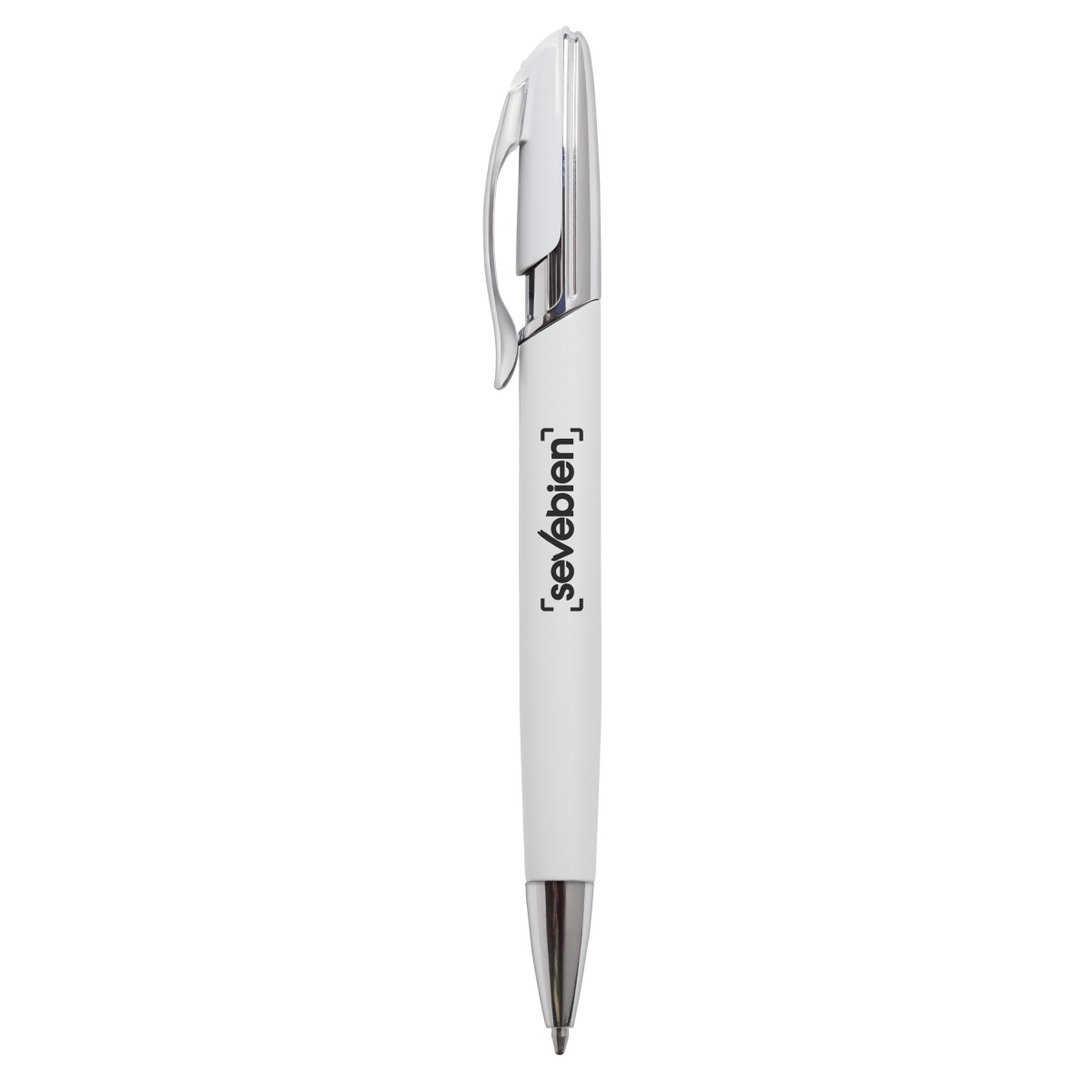 Aluminio. Cuerpo en aluminio opaco. Pulsador y puntera plásticos color plata brillante. Clip metálico.Tinta negra. Electroplateado.