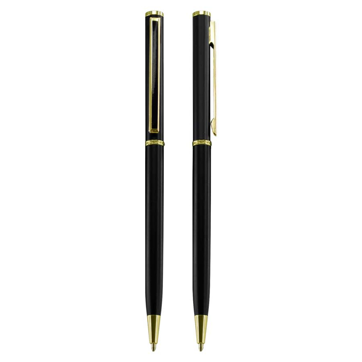 Bolígrafo Metálico negro "Tourist", con terminales dorados. Especial para el rubro Hotelería y Turismo. Escritura negra.
