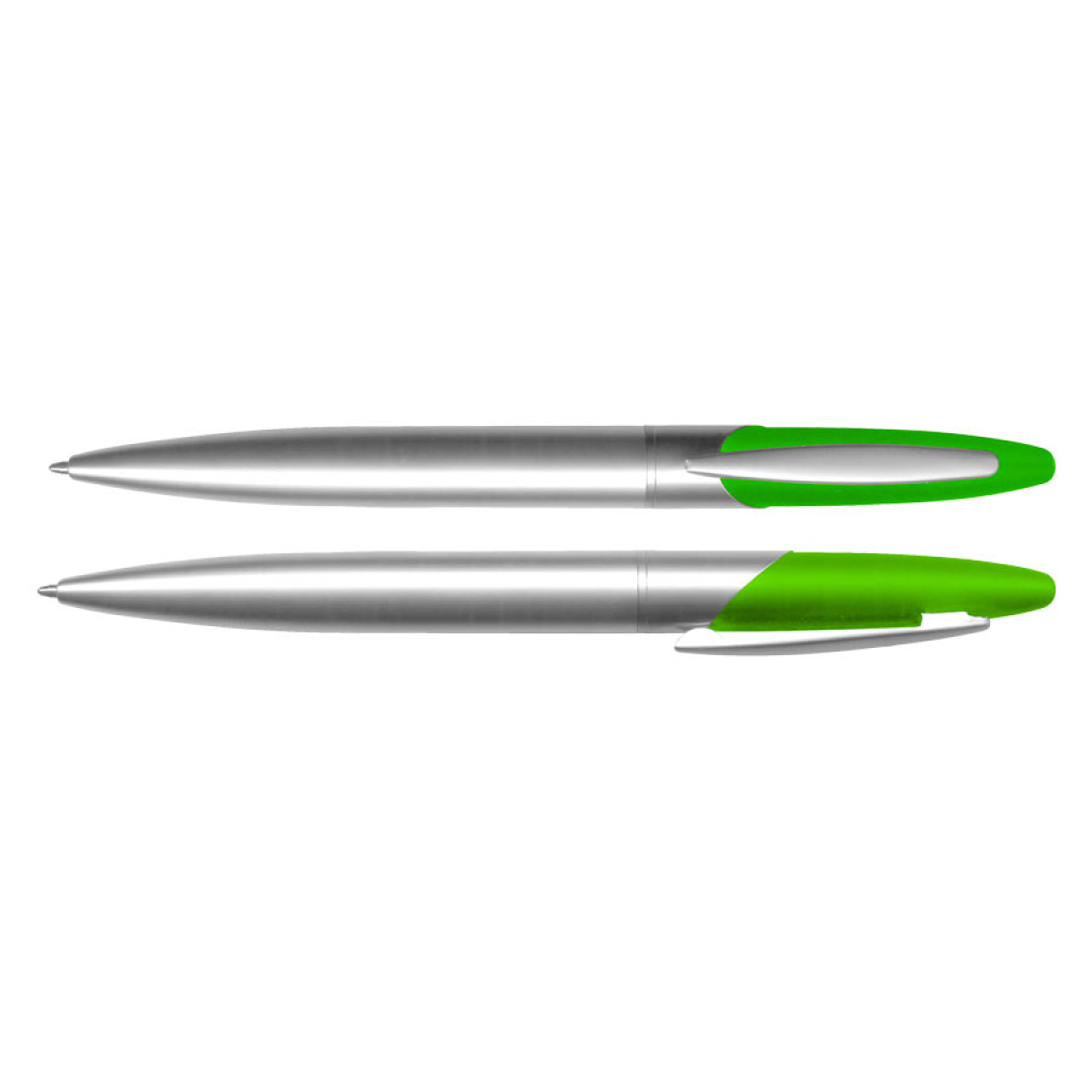 Bolígrafo Metálico modelo "Twister", con superficie superior engomada color. Escritura negra.