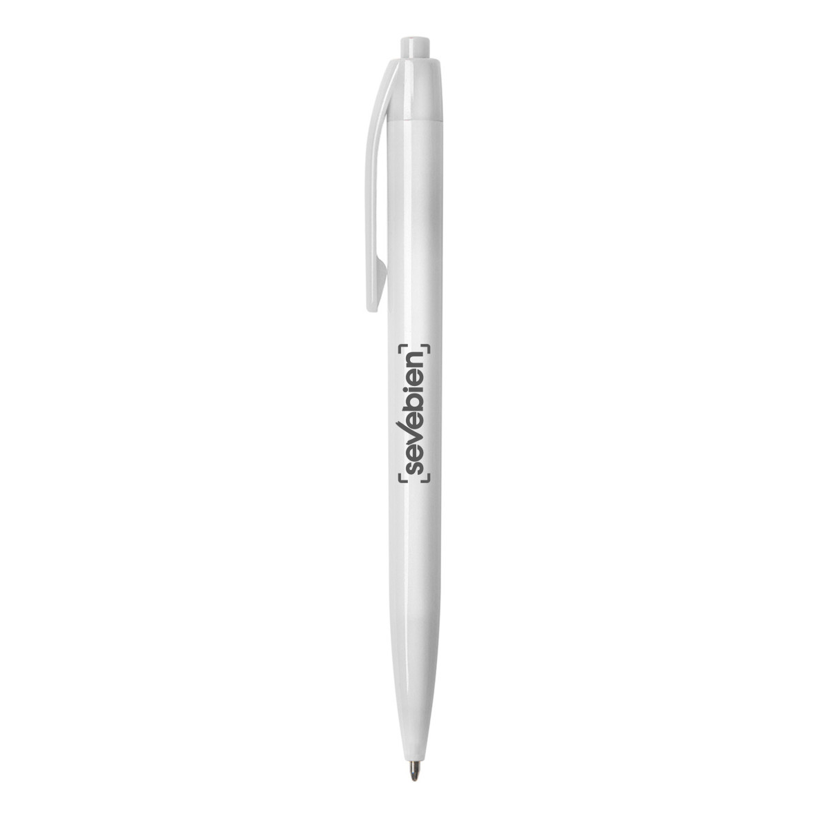 Plástico. Bolígrafo con cuerpo plástico de color con pulsador. Tinta negra.