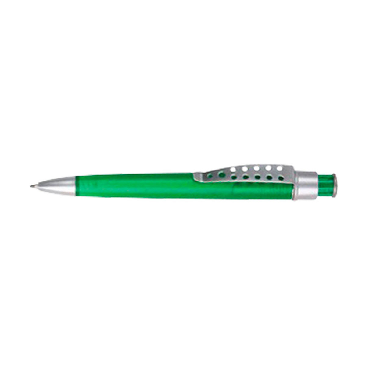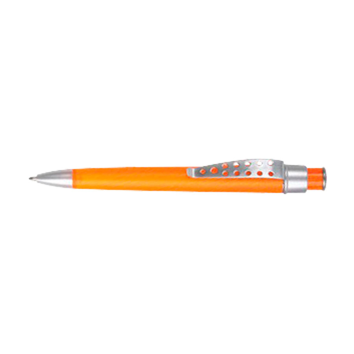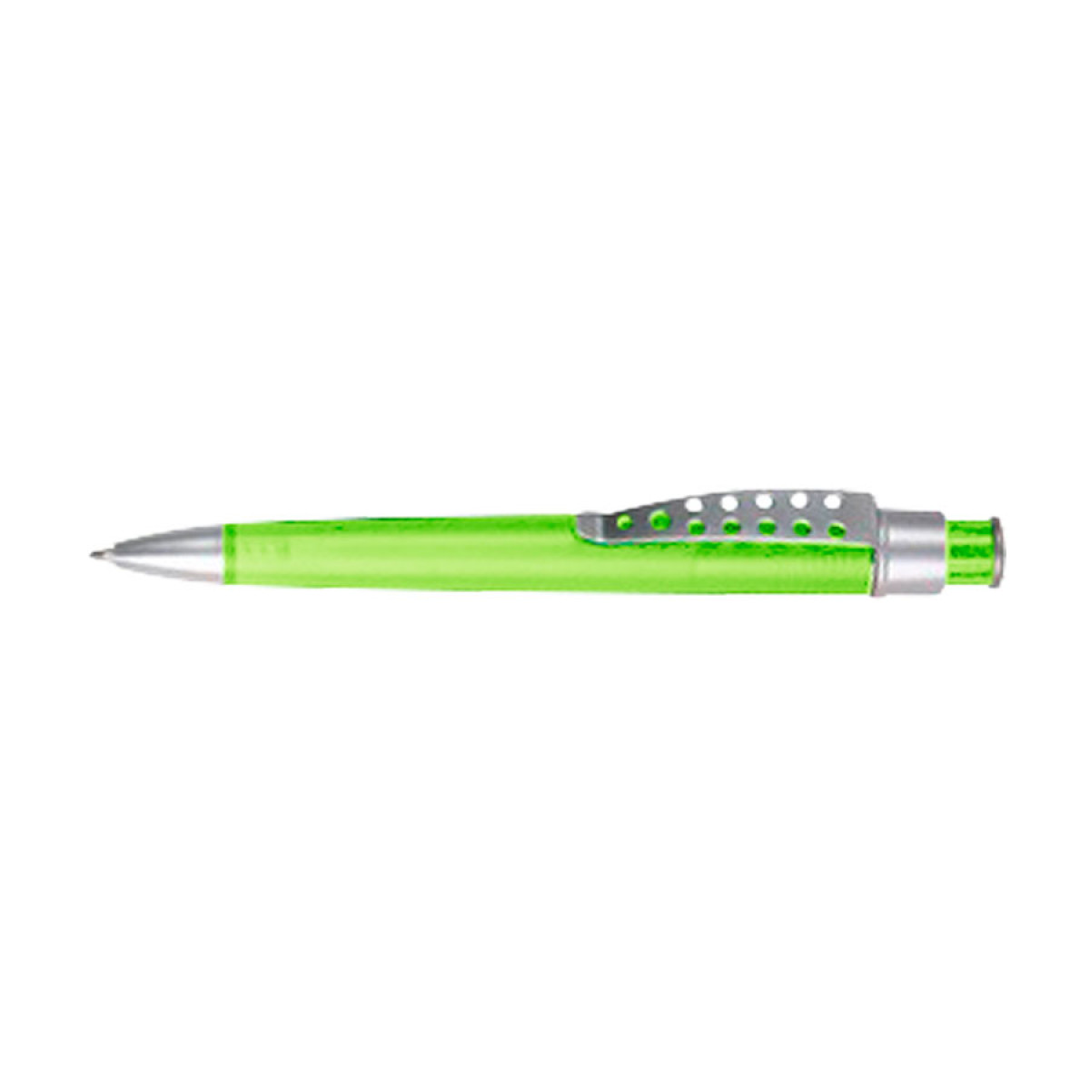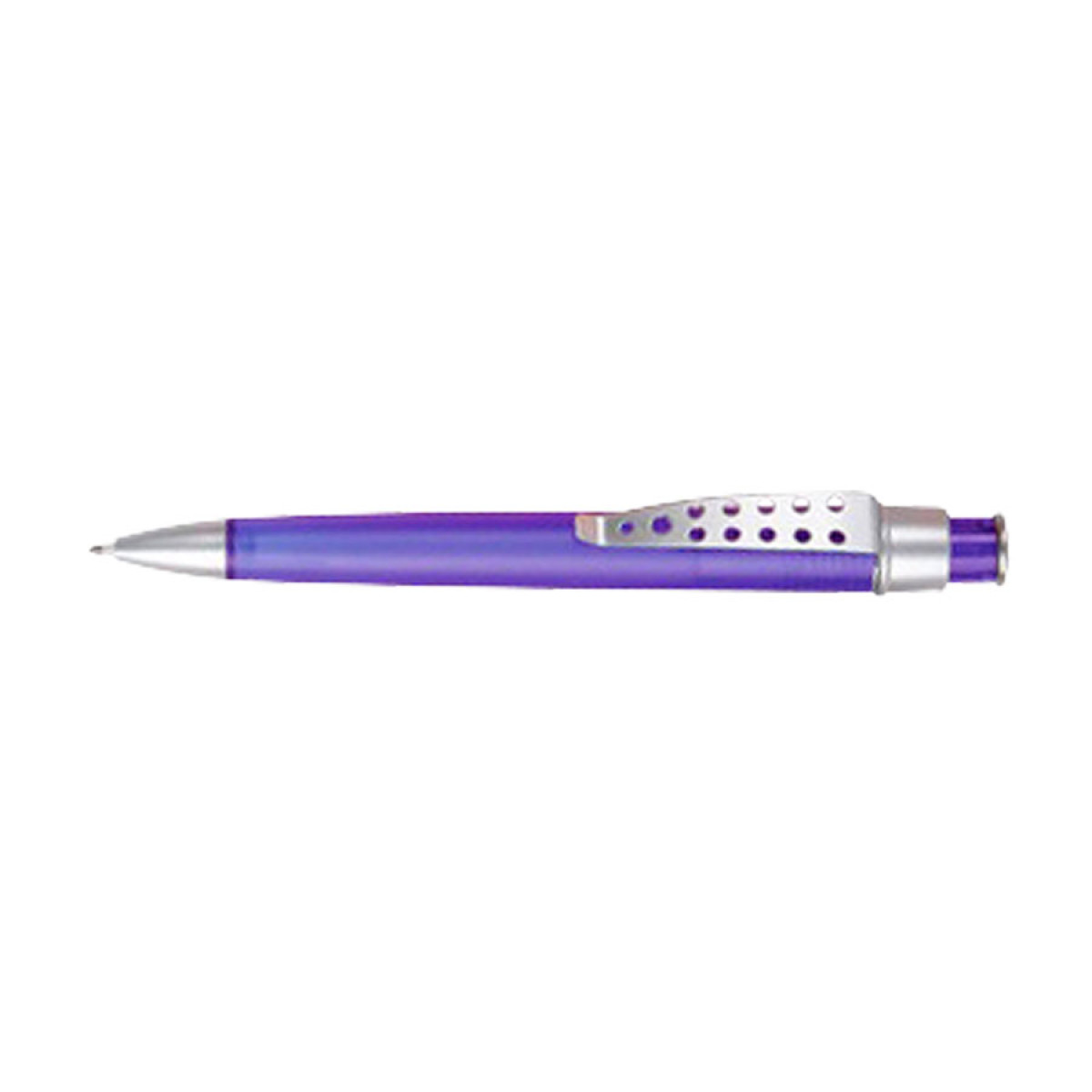 Bolígrafo plástico color frozen modelo "Evolution" con clip metálico con orificios. Escritura azul.
