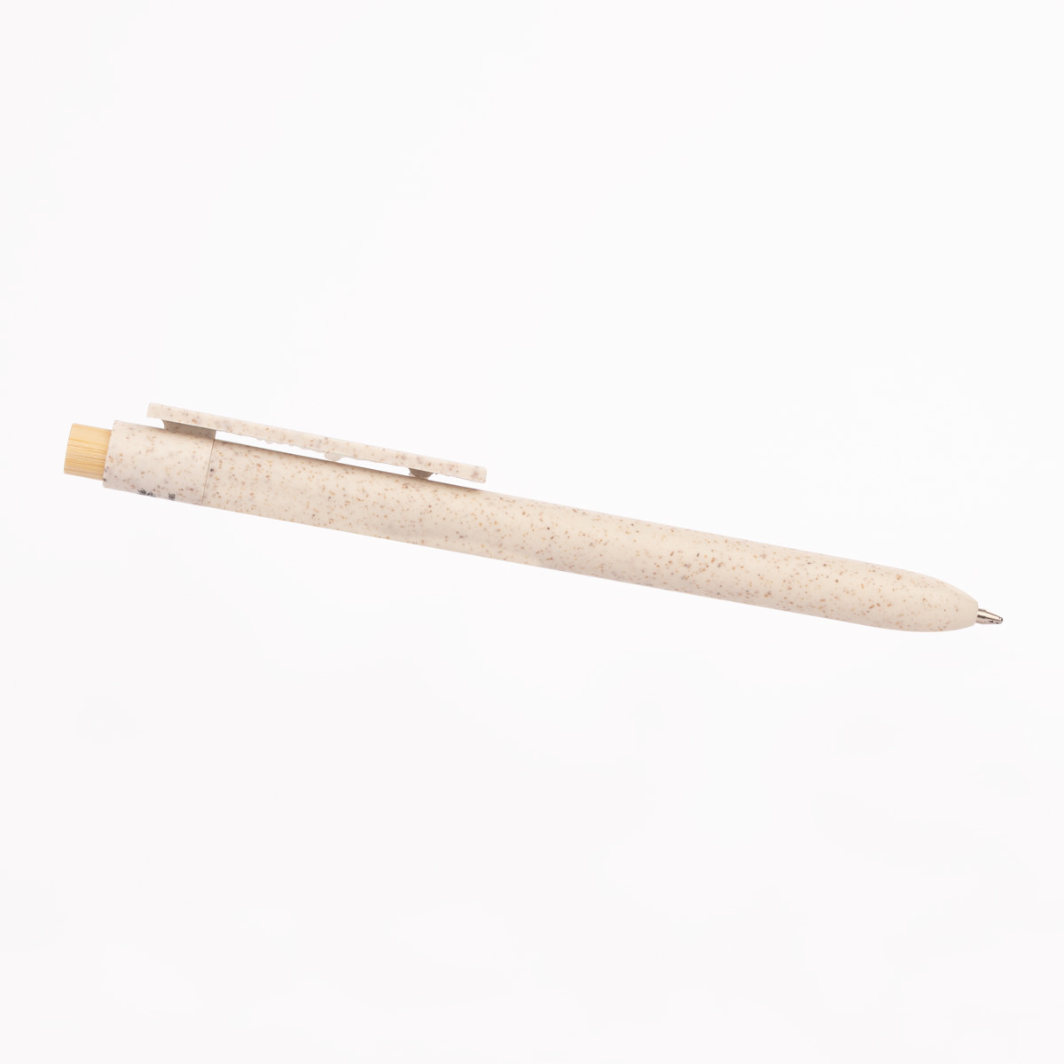 BOMBAY es un bolígrafo que combina lo esencial con lo responsable. Su cuerpo y clip están elaborados con fibra de trigo, un material natural que reduce el uso de plástico convencional, mientras que su pulsador de bambú añade un toque orgánico y moderno. Disponible en una paleta de colores vibrantes –blanco, azul, rojo, verde, naranja y café– y diseñado para personalización, BOMBAY es ideal para campañas que buscan comunicar creatividad y sostenibilidad en un solo trazo