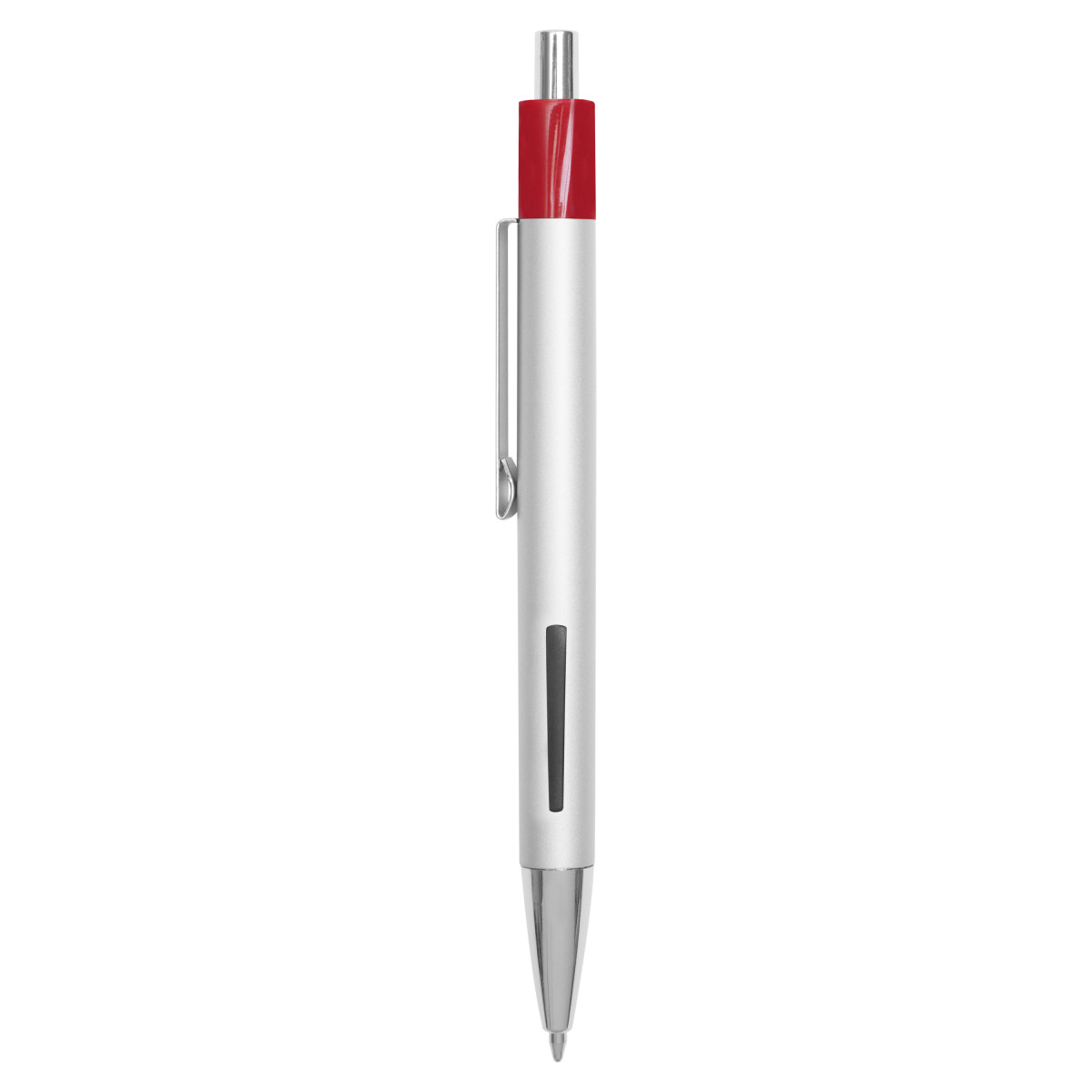 Metálico. Pulsador, clip y puntera metálicos. Cabezal cuadrado de color. Gomas laterales antideslizantes. Tinta negra.