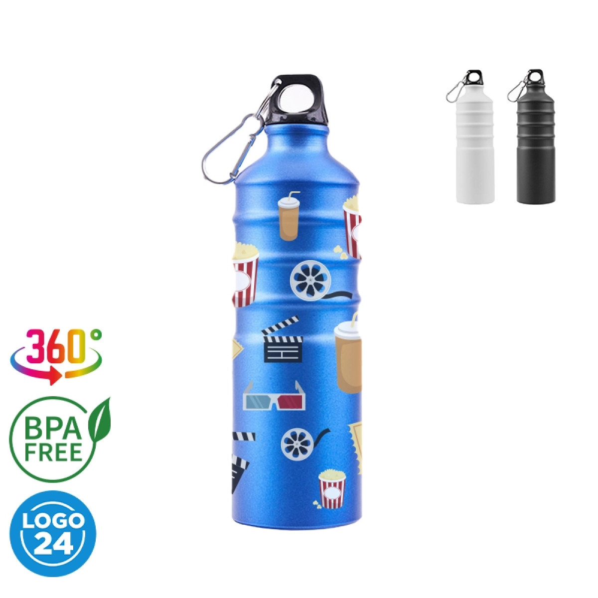 Sport Bottle reutilizable de aluminio con tapa rosca de PP y silicona. Cuenta con una tapa con agarre para facilitar su transporte. Producto libre de BPA. Medidas: 24,5 cm x Diámetro 7,2 cm. Capacidad: 750 ml. LOGO24: Producto disponible para el servicio de logueo en 24 horas respetando unidades mínimas de logueo y 200 unidades máximas. Consultar términos y condiciones del servicio