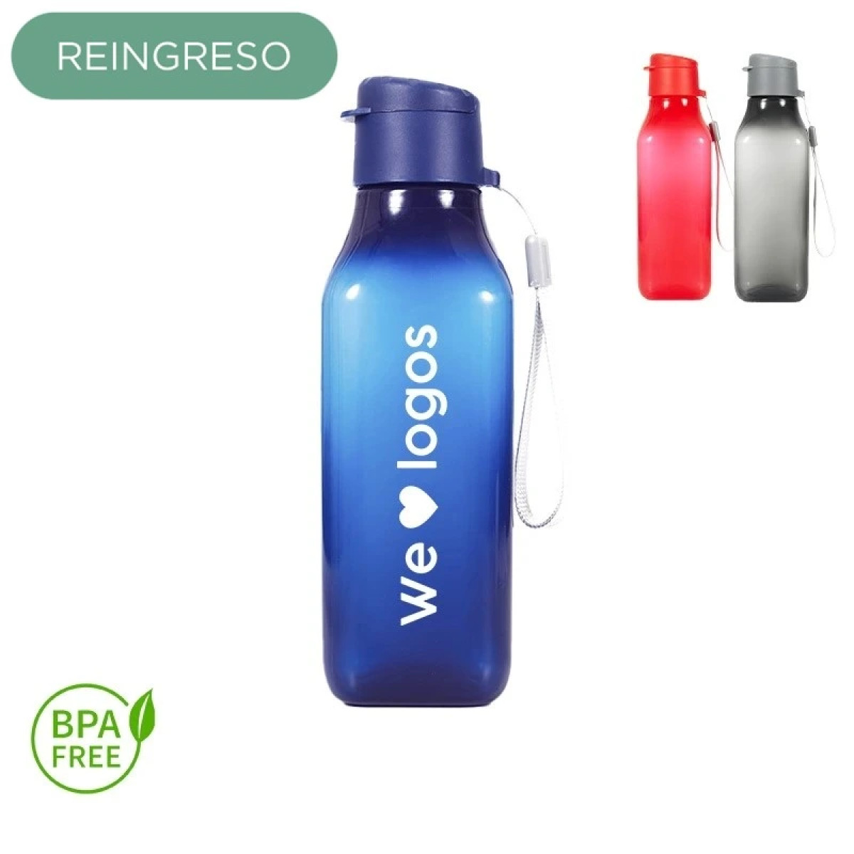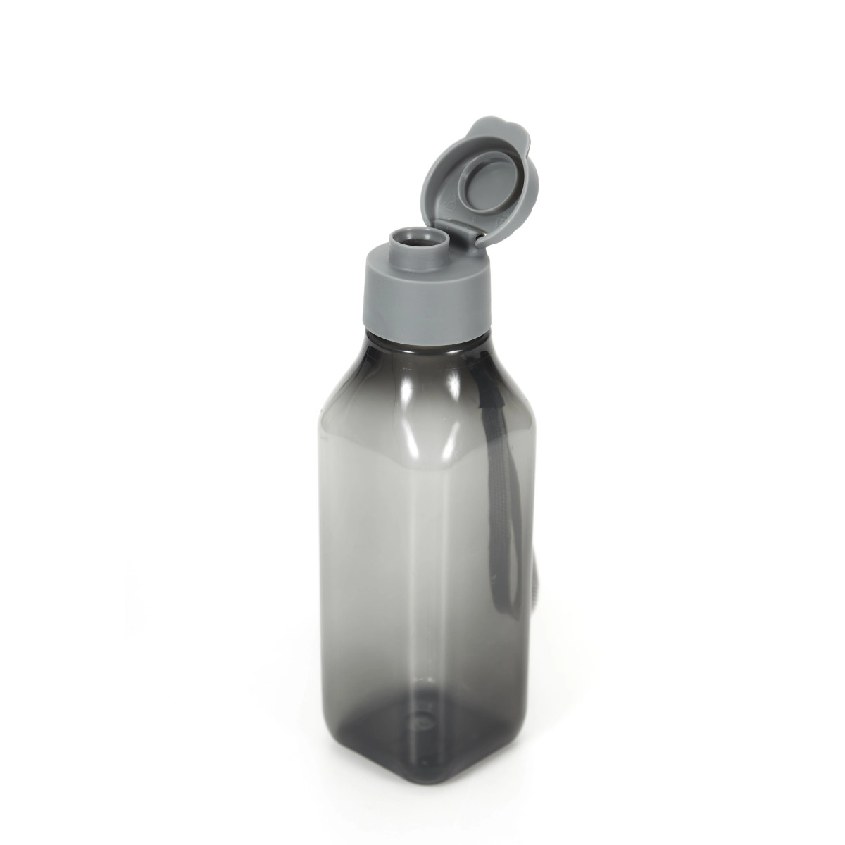 Botella de PP con tapa de fácil apertura y boquilla para beber con facilidad.