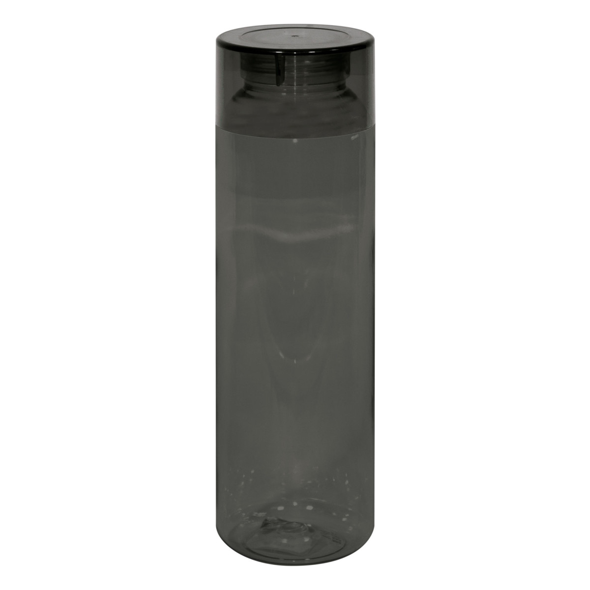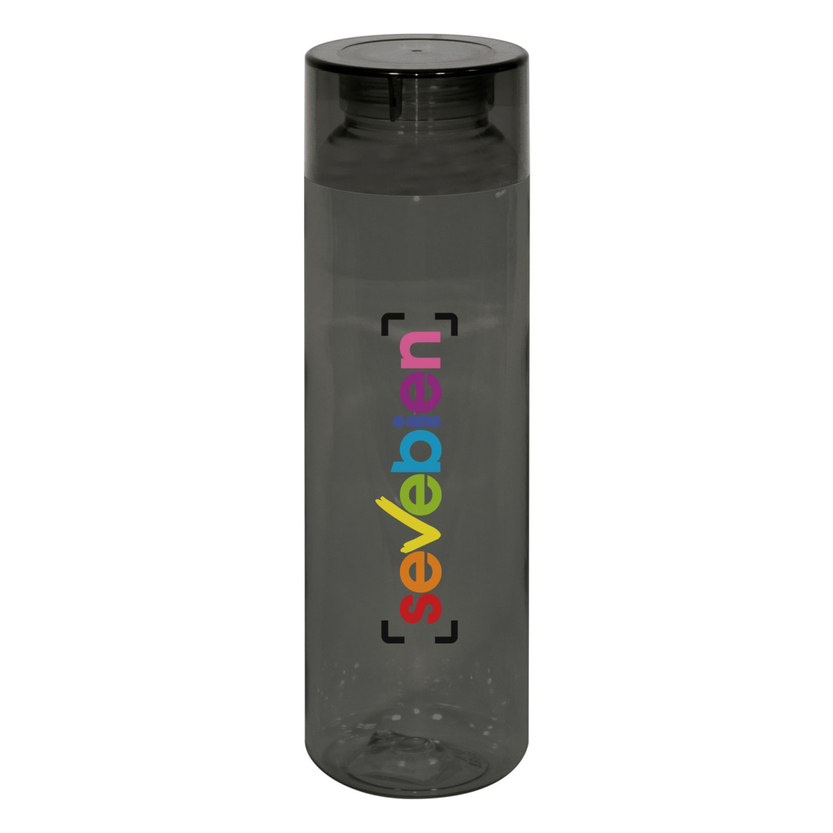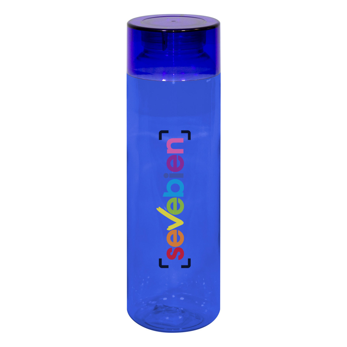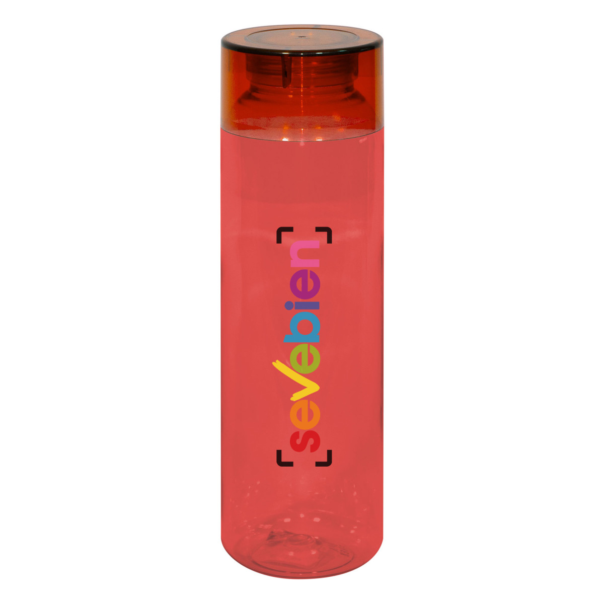 Botella de plástico de colores translúcidos con tapa a rosca plástica.