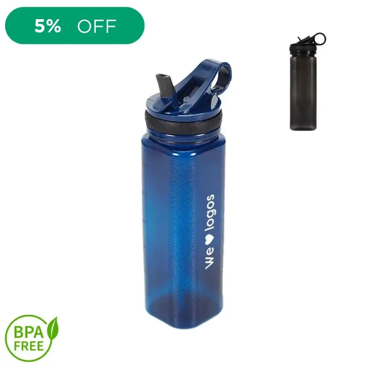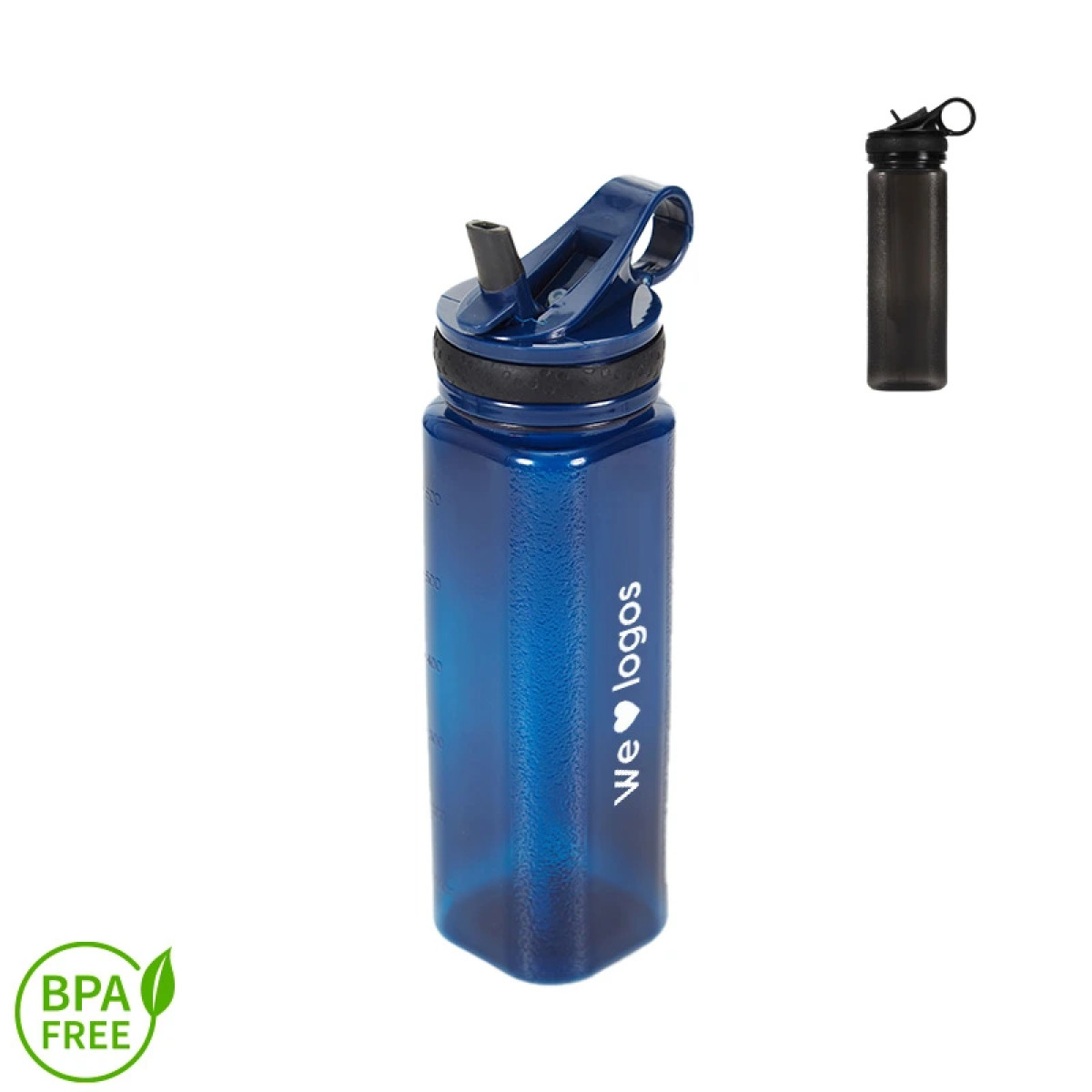 Botella de PP con boquilla vertedora deportiva. Cuenta con un agarre en la tapa. Medida: 23,7 cm x 6,2 cm. Capacidad: 650 ml.