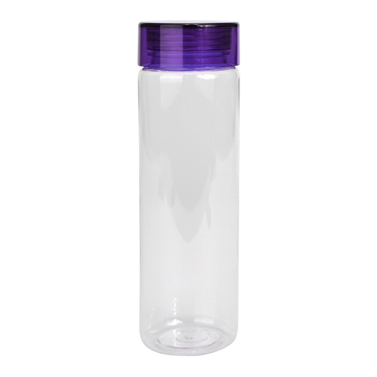 Botella plástica PET translúcido, con tapa redonda twist-off PET de color, modelo "LOUIS". Producto BPA FREE, para el contacto con líquidos y alimentos. Capacidad 600ml. Presentación en bolsa OPP + caja de regalo de cartón kraft.