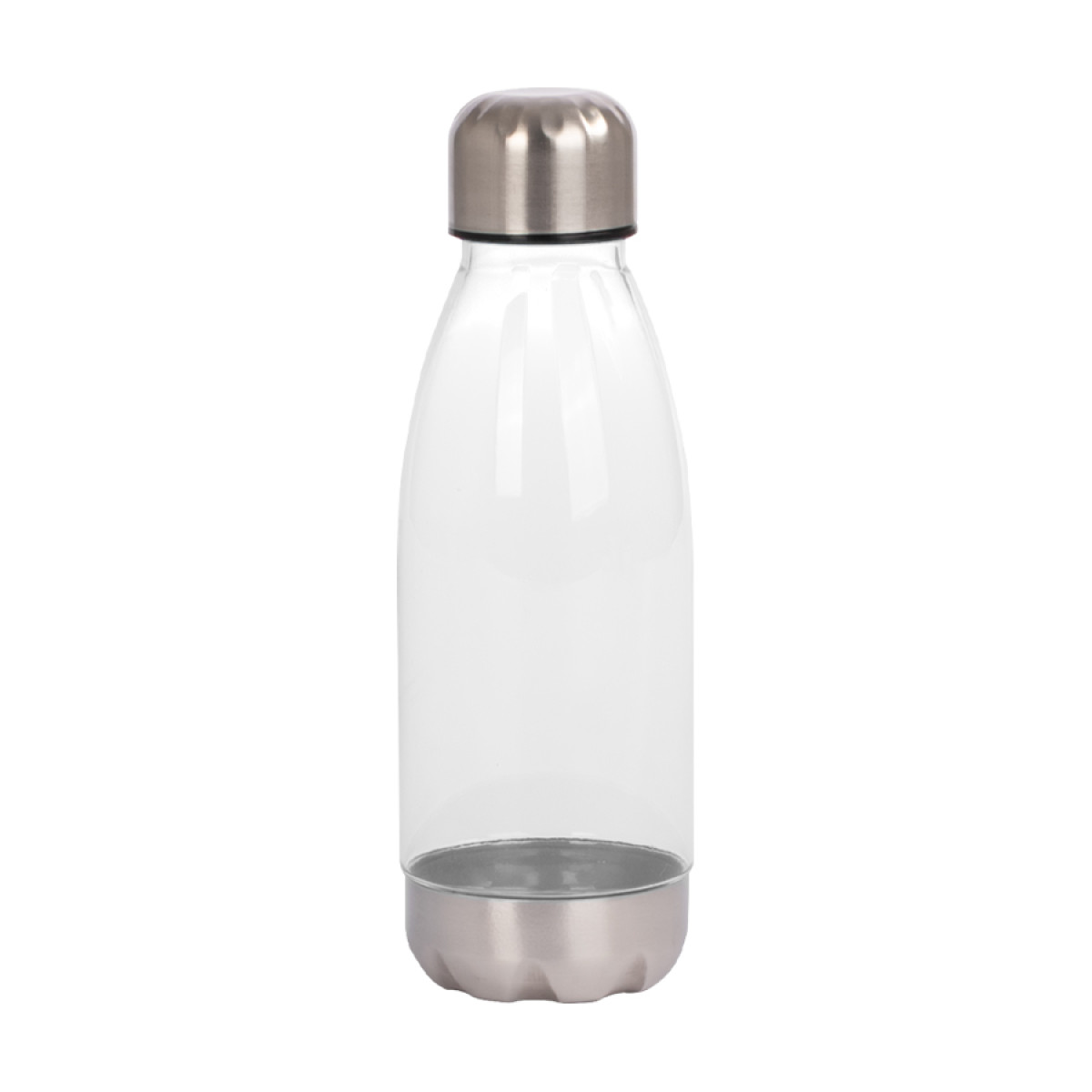 Botella plástica de Acrilonitrilo Estireno (AS) color translúcido, con fondo y tapa de Acero inoxidable, modelo "AS". Producto BPA FREE, para el contacto con líquidos y alimentos. Capacidad 500ml. Presentación en bolsa OPP + caja de regalo de cartón negro.