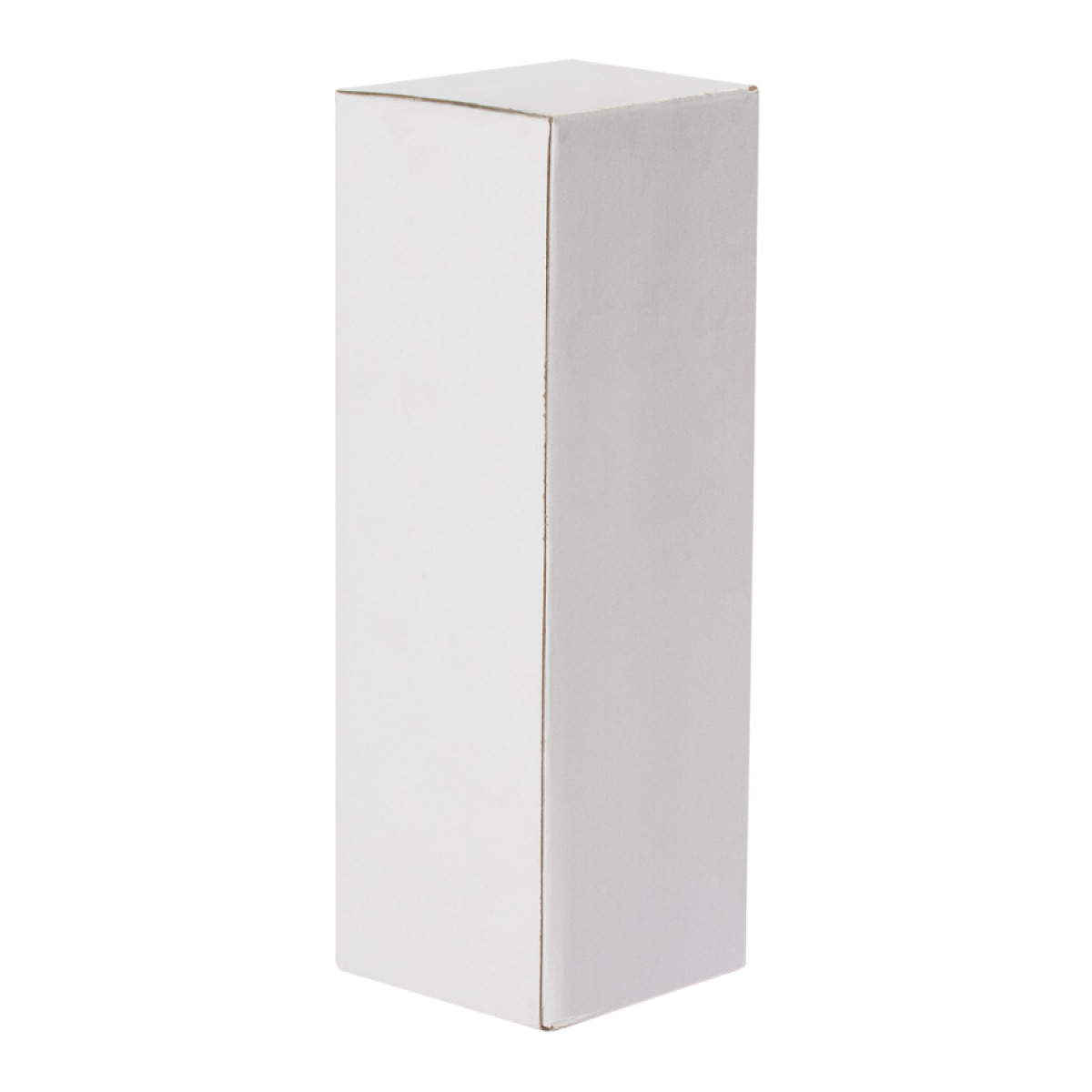 Botella térmica de 550cc. con doble pared aislante de Acero Inoxidable, cuerpo blanco para Sublimación y tapa de madera de bamboo con asa plástica negra.