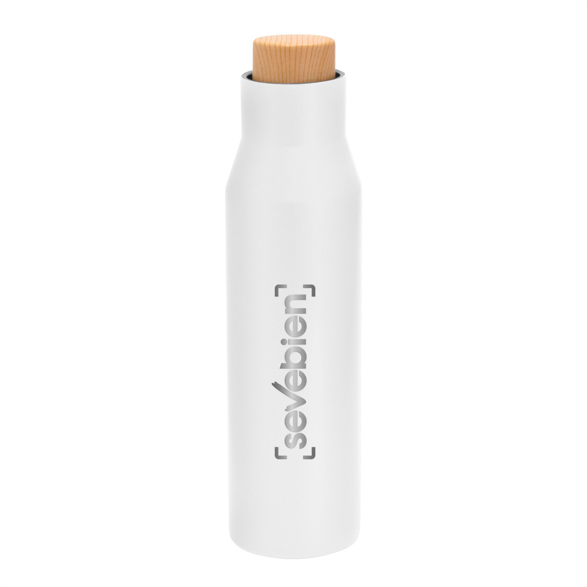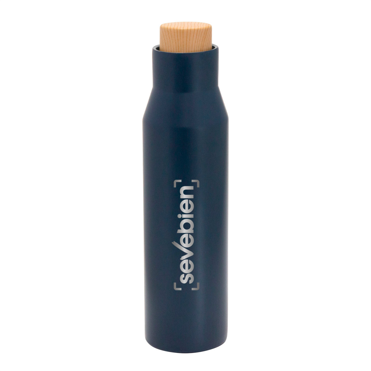 Ideal para llevar a tus actividades diarias.Botella doble pared, sellada al vacío. Interior de acero 304 y exterior de acero 201. Pintura acabado mate. Tapa a rosca con anillo de silicona, interior de acero 201 y exterior en polipropileno imitación bambú. Mantiene por más de 12 hs la temperatura de las bebidas calientes y 24 hs de las bebidas frías. Medidas: Ø 6,8 cm x 26 cm.