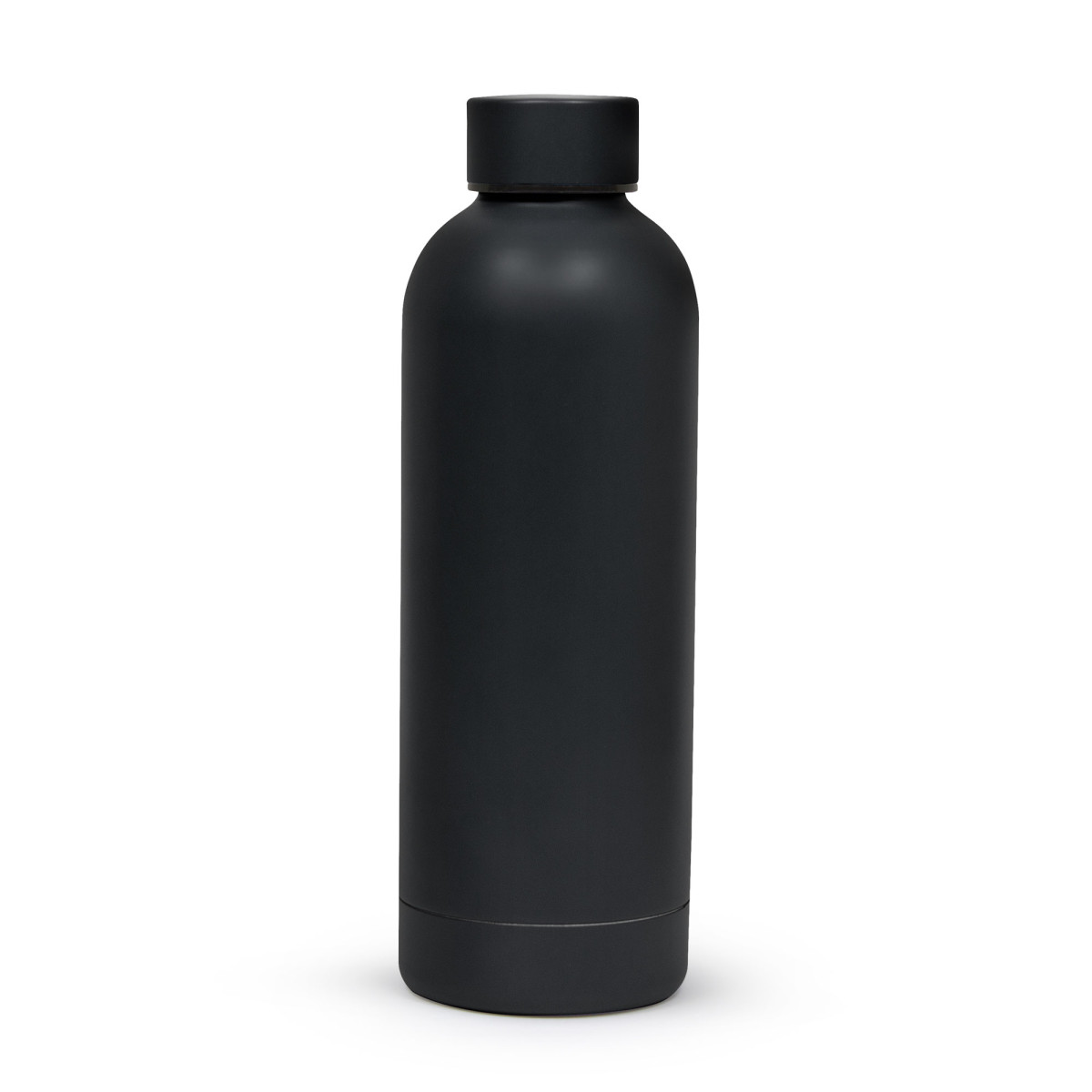 Ø 7.4 x 22 cm. Capacidad 500 ml. Acero inoxidable. Botella doble pared, sellada al vacío. Interior en acero 304 y exterior en acero 201. Mantiene hasta 12 hs la temperatura de las bebidas calientes y 24 hs de las bebidas frías. Presentación en caja de regalo.