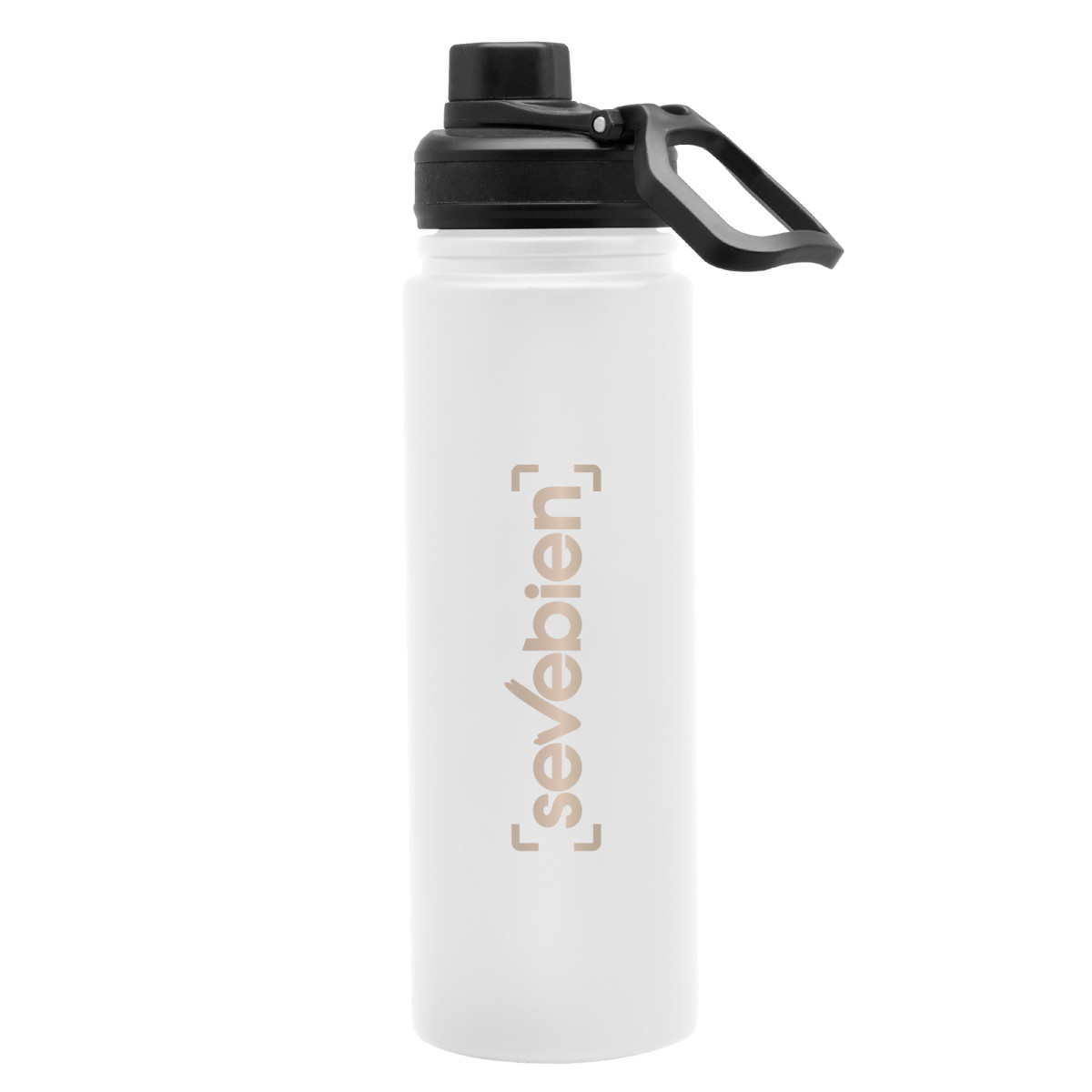 Mantén tu bebida en la temperatura idealBotella doble pared, sellada al vacío. Interior en acero 304 y exterior en acero 201. Tapa con anillo de silicona, boquilla con cierre a rosca antiderrame y manija plástica para su agarre. Mantiene hasta 12 hs la temperatura de las bebidas calientes y 24 hs de las bebidas frías. Medidas: Ø 7,5 x 26 cm.