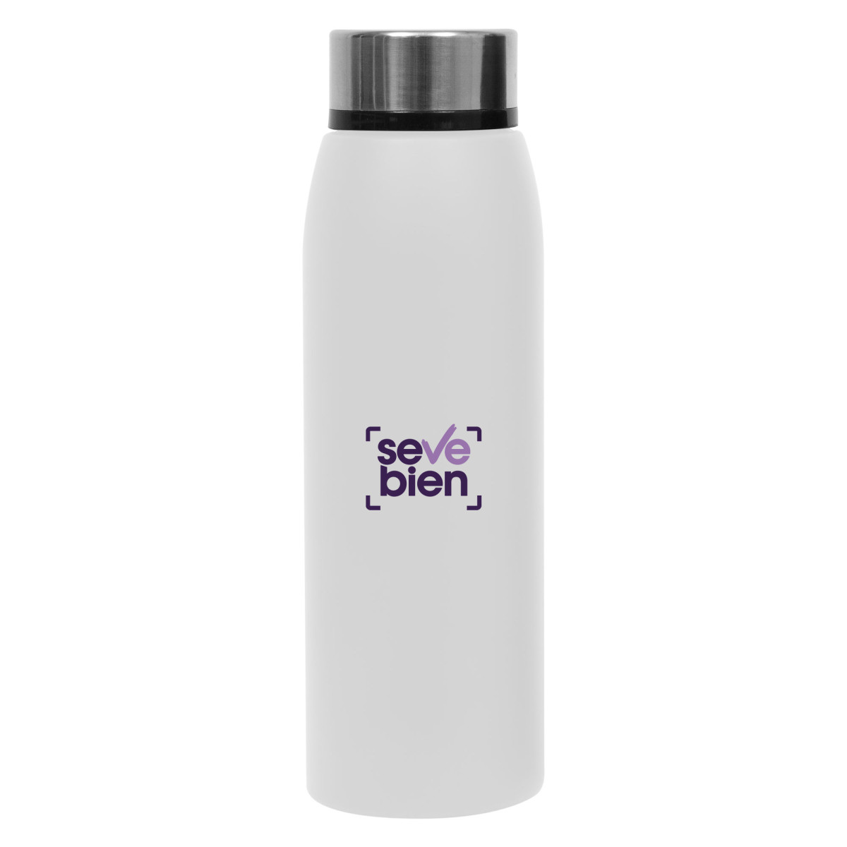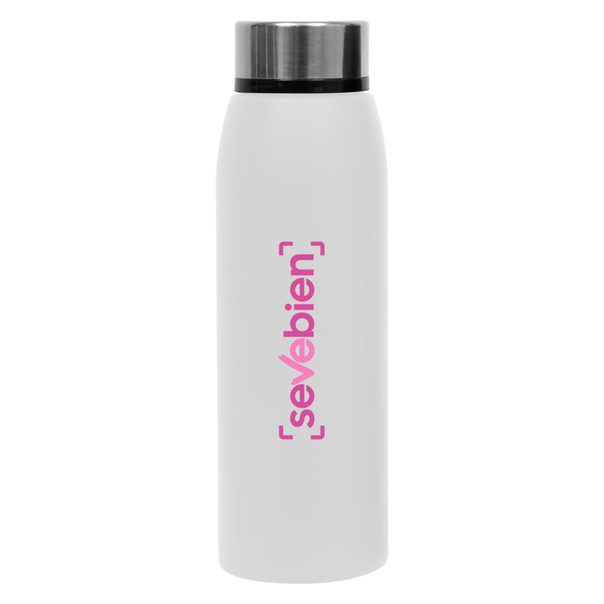 Ø 7 x 23,5 cm. Capacidad 500 ml. Botella doble pared, sellada al vacío. Interior de acero 304 y exterior de acero 201. Cuerpo color negro y tapa a rosca de acero. Mantiene hasta 12 hs la temperatura de las bebidas calientes y 24 hs de las bebidas frías. Presentación en caja de regalo.
