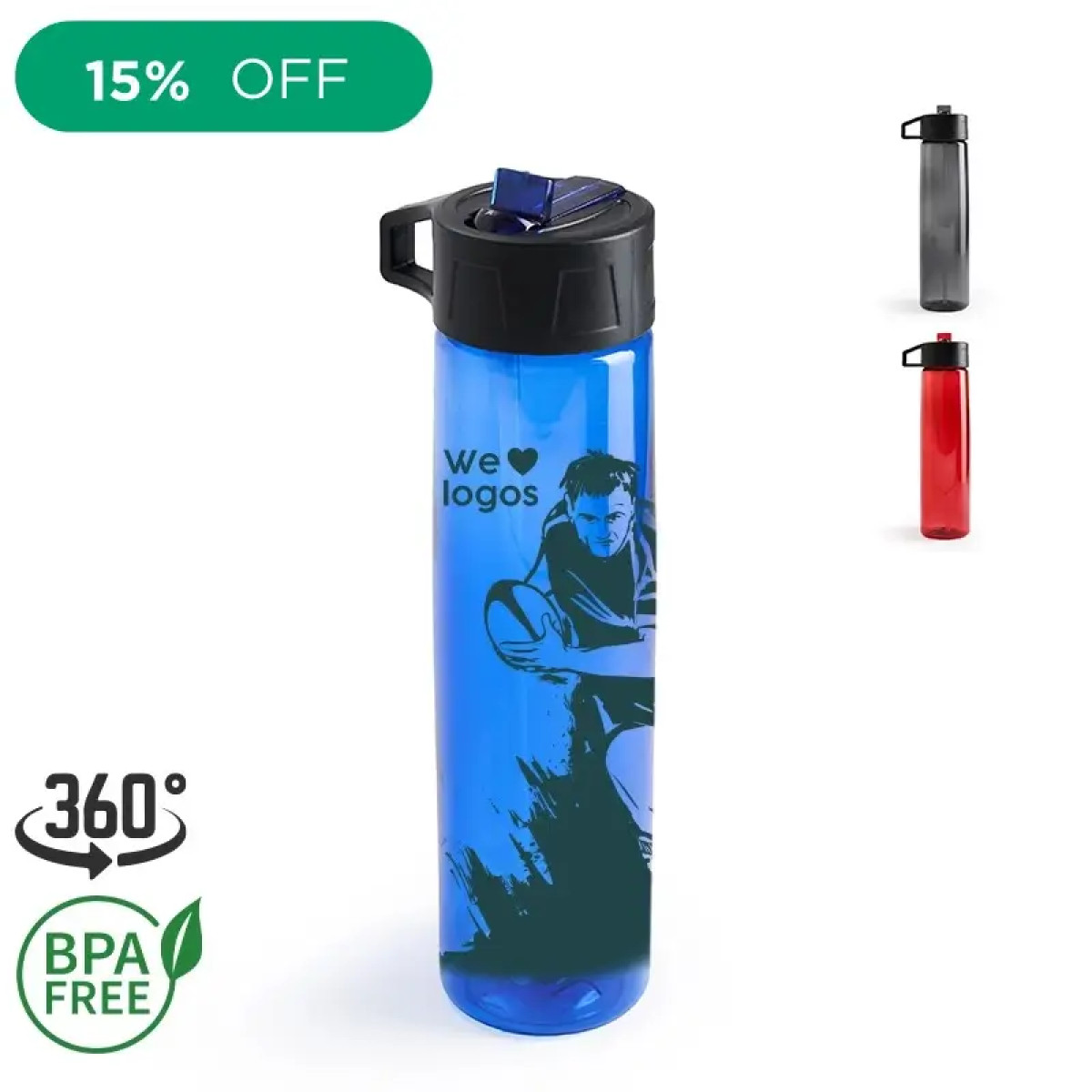 Botella de PP y PC, con boquilla vertedora ideal para ir al deporte. Cuenta con un agarre en la tapa, para facilitar su transporte. Capacidad: 750 mL. Medidas : 27 x 6,6 cm.