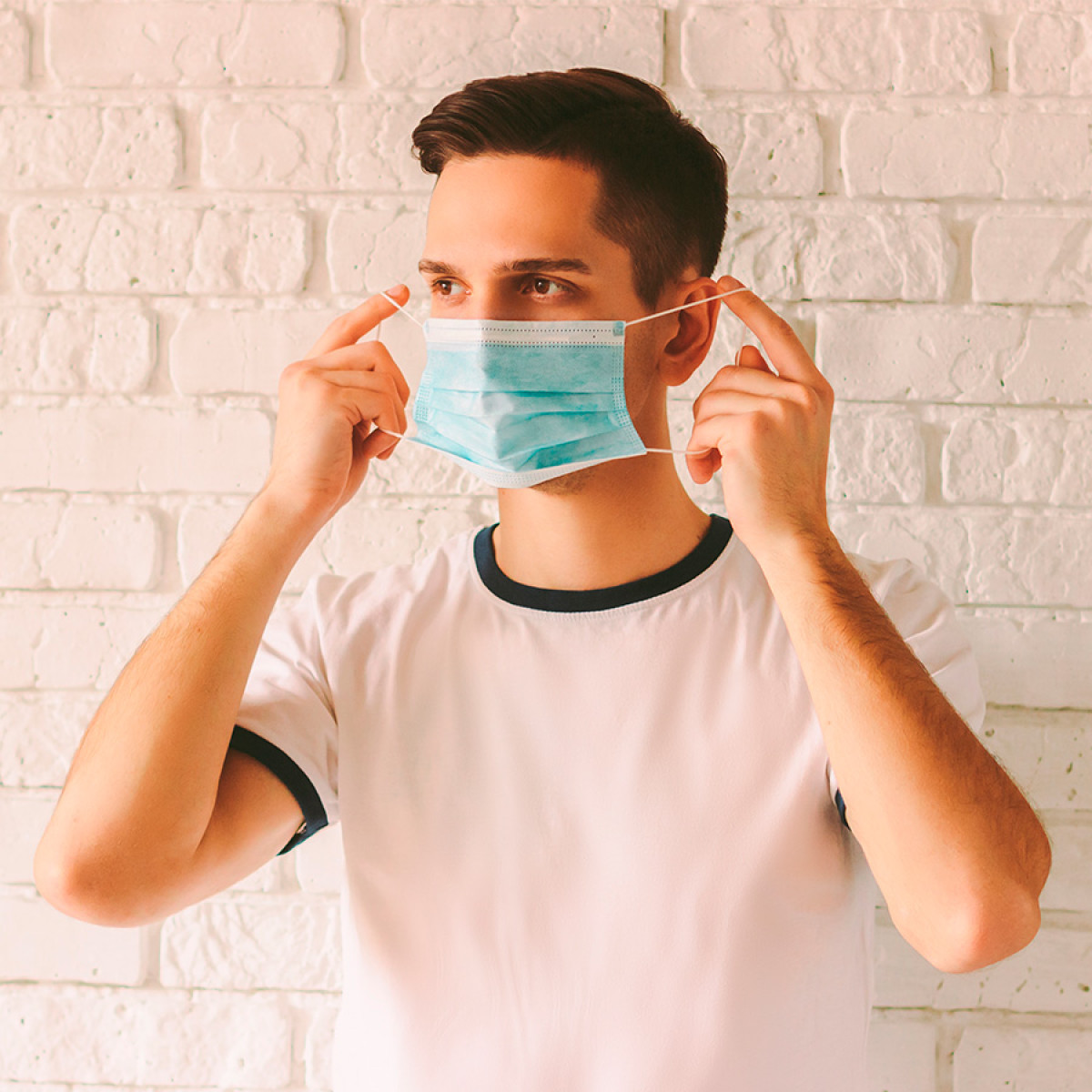 Caja de 50 mascarillas Faciales con 3 pliegues, para la protección de transmisión de partículas por vía aérea. Contiene 3 capas protectoras, las 2 capas exteriores de tela TNT, filtro interior de polipropileno liso de alta densidad. Bandas elásticas para sujeción a las orejas. Fácil y cómoda de usar.