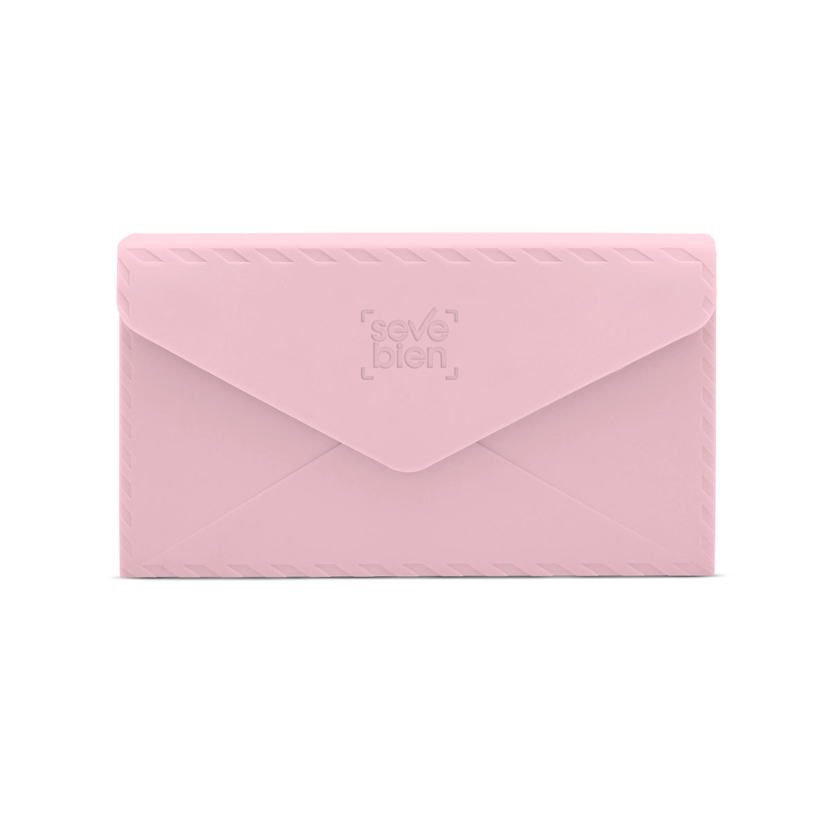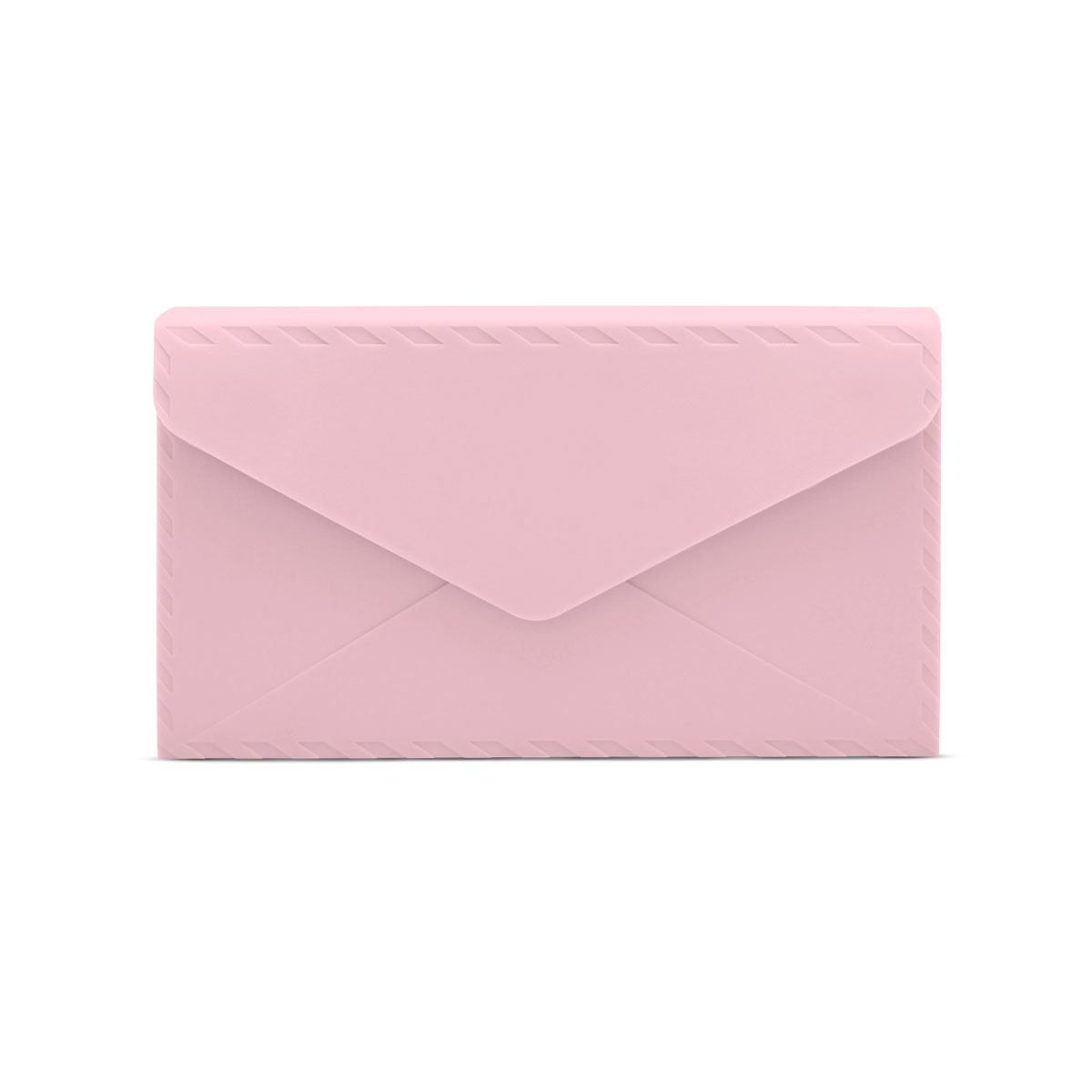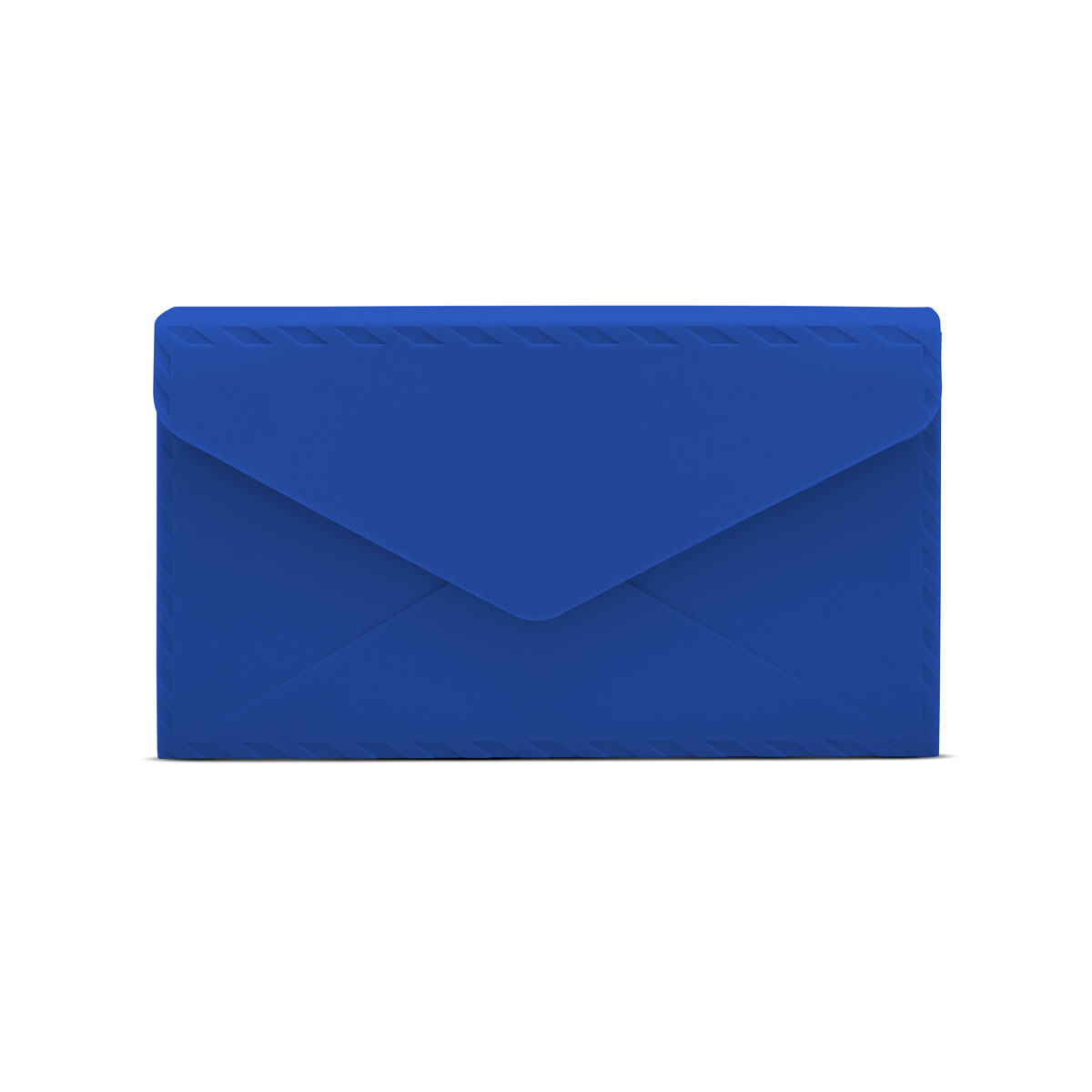 21,5 x 12,2 x 5 cm. Silicona. Cartera de mano en forma de sobre con solapa imantada y correa desmontable. Presentación en caja de regalo.