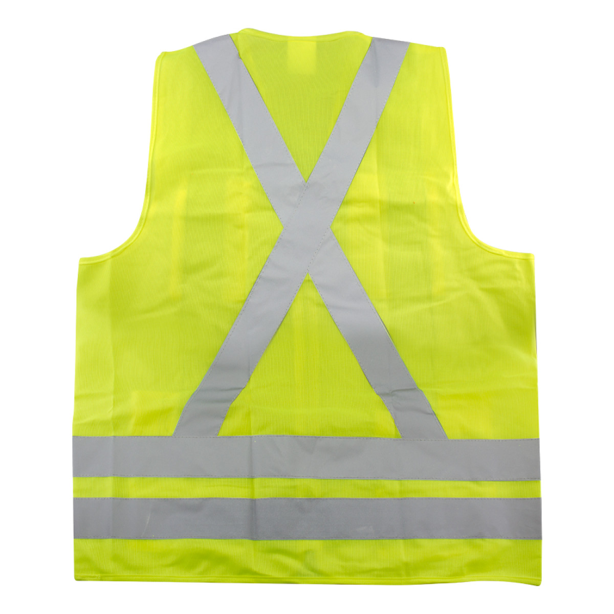 Chaleco Reflectante de Seguridad modelo "Supervisor", 100% tela poliéster 120 g/m2 fluorescente con bandas reflectantes color plateado de 5 cm. de ancho. Incluye 4 bolsillos y cierre-eclair. Cumple con norma legal vigente EN 471.