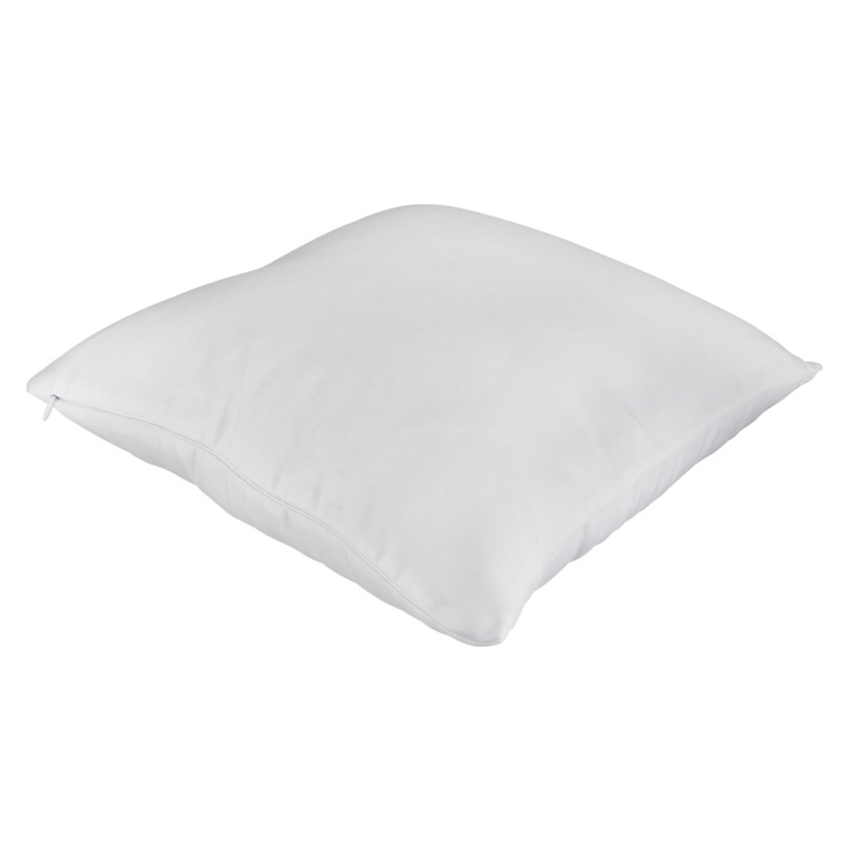 Cojín cuadrado de 38 x 38 cm. con funda desmontable (cierre) de poliéster blanco de 39 x 39 cm. para Sublimación. Presentación en bolsa de polipropileno.