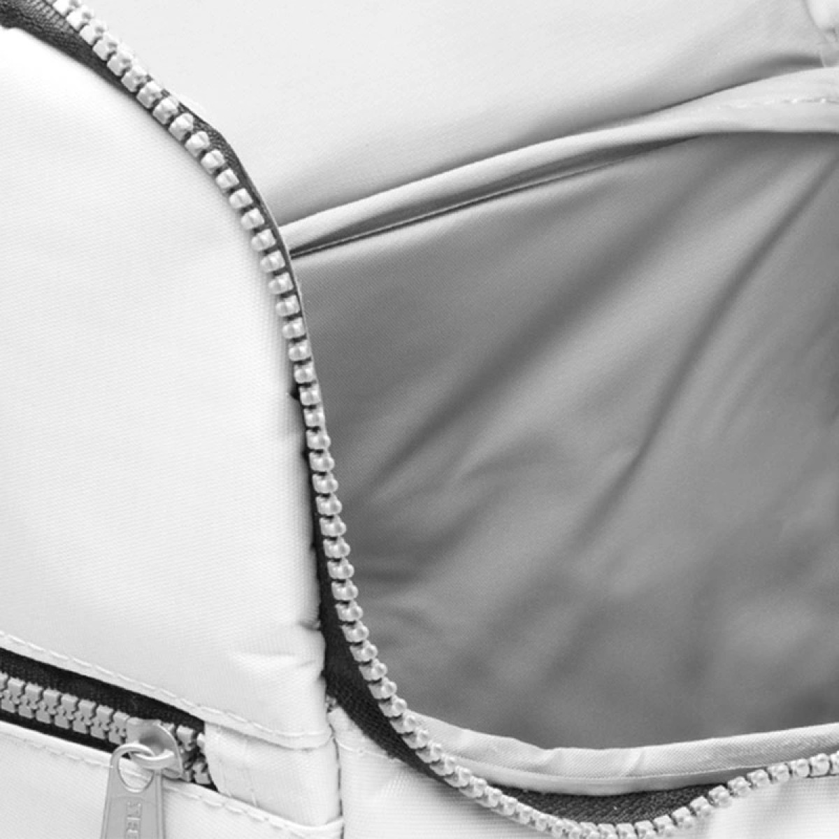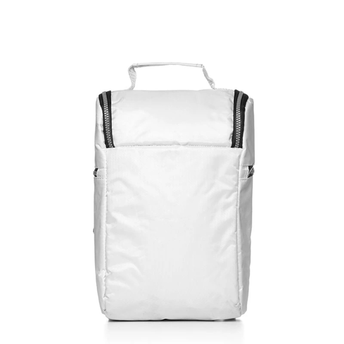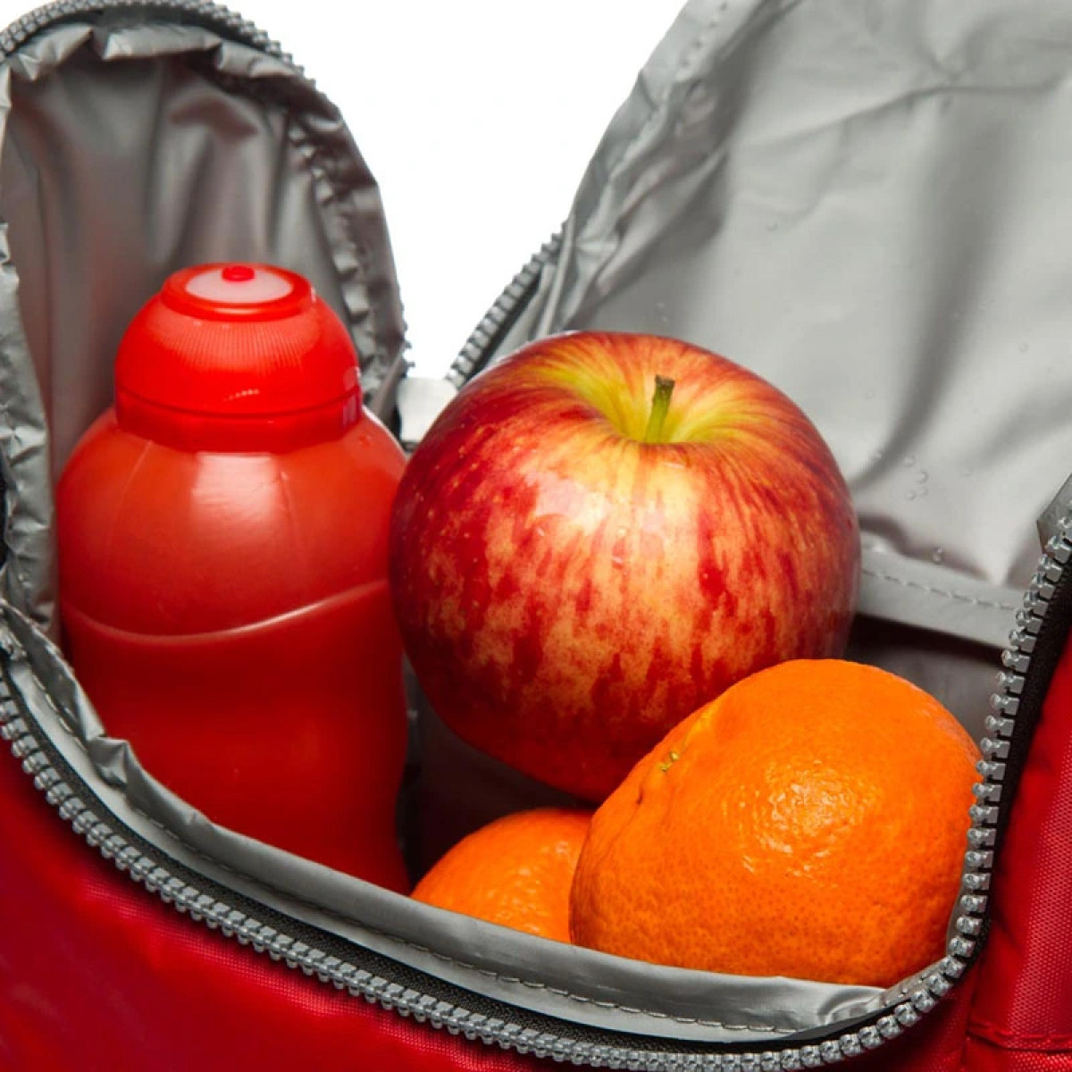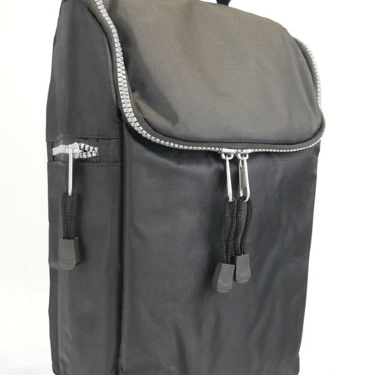 Cooler confeccionado en tela Nylon 600D, interior térmico forrado en PVC gris. Bolsillos laterales. Apto para llevar botellas, termos y otros.