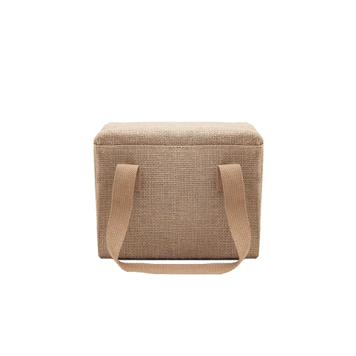 Cooler con exterior de Yute e interior térmico confeccionado en PEVA. Debido a la naturaleza rústica del material, el producto puede presentar imperfecciones.