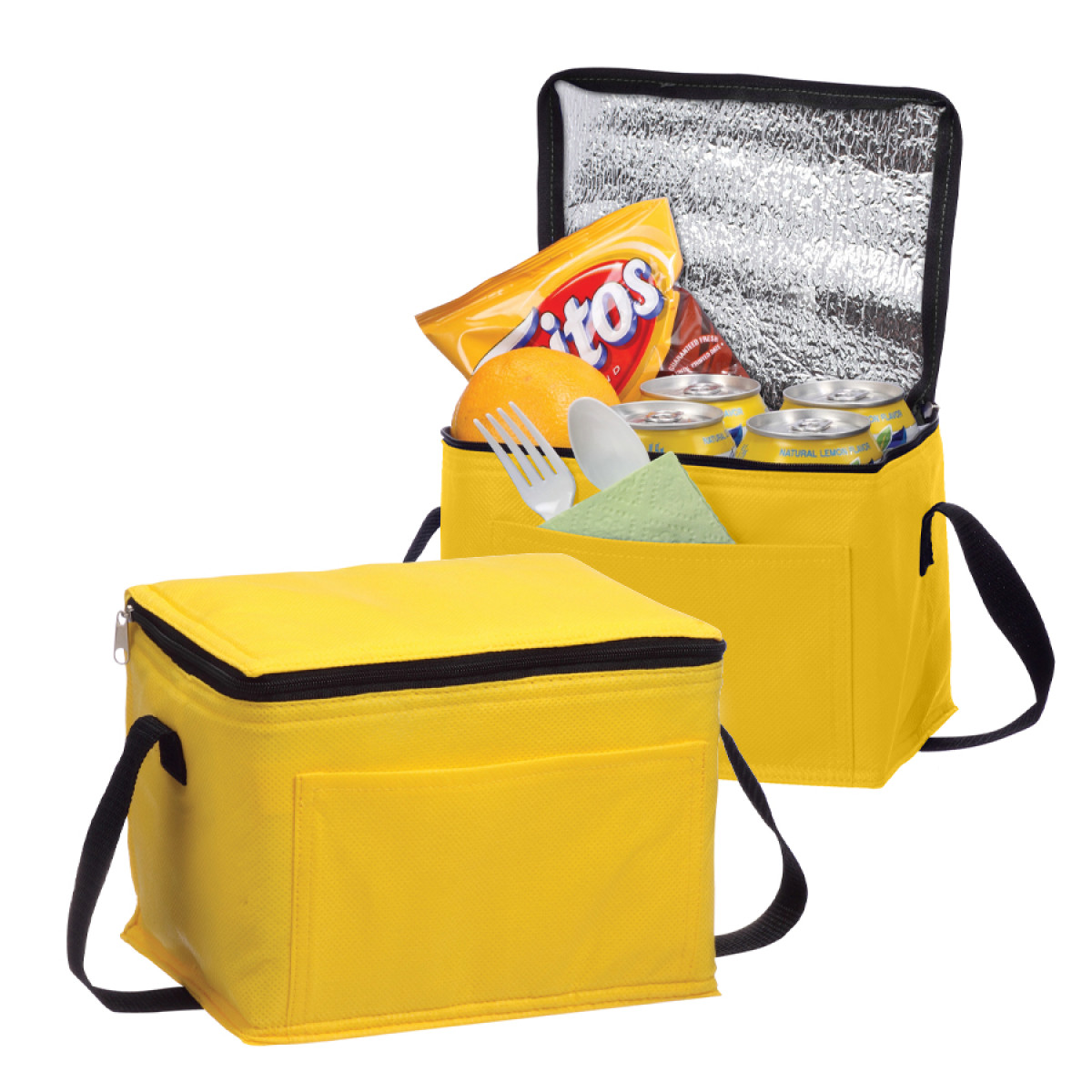 Cooler-Lonchera con bolsillo delantero, en tela no tejida (TNT) de 80g/m2. Interior en tela PVC metalizado aislante.