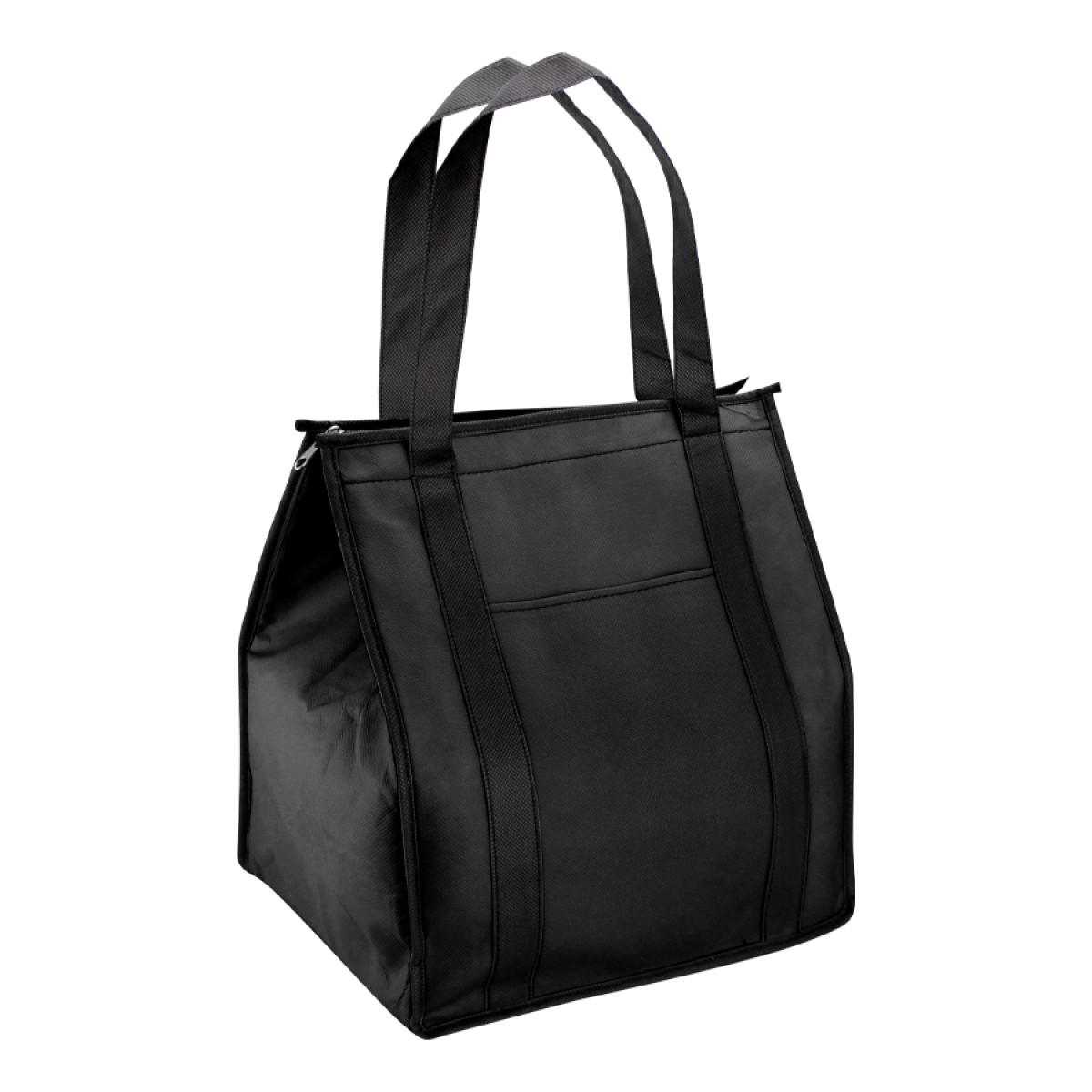 Cooler-Lonchera grande con bolsillo delantero, en tela no tejida (TNT) de 80g/m2. Interior en tela PVC metalizado aislante.