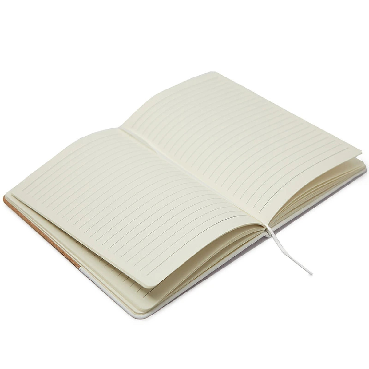 Cuaderno con tapa de corcho y PU. Cinta marca página y elástico de cierre. 80 hojas rayadas. Medidas: 14,5 x 22 cm. ReUseMe.