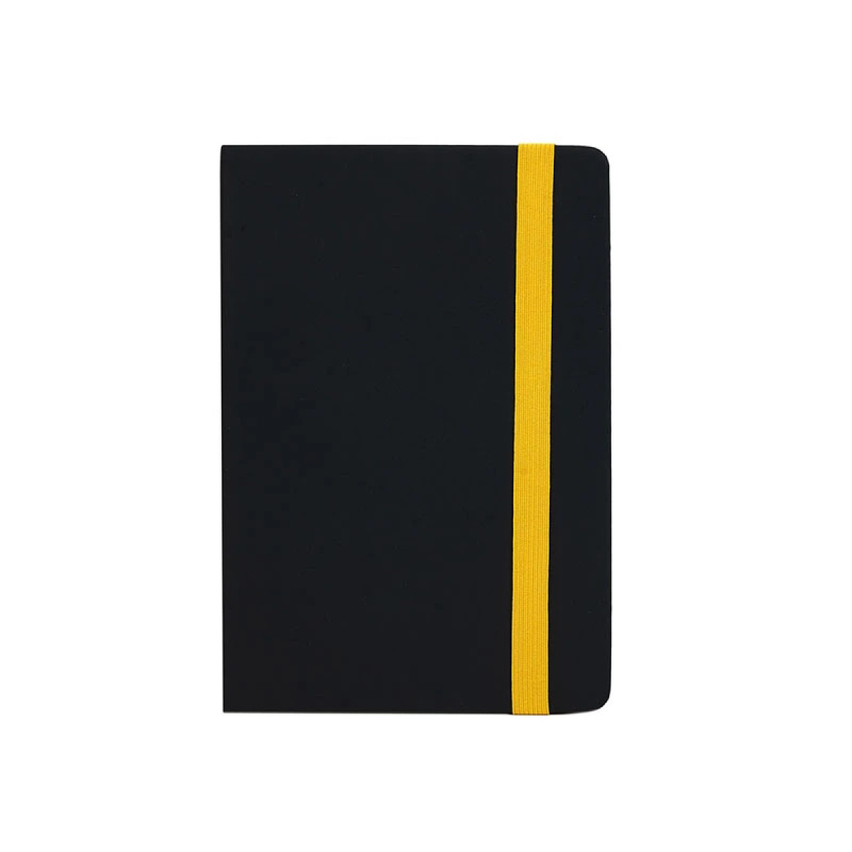 Cuaderno de tapa dura con 80 hojas rayadas A5 de 80gr Hecho en PVC con cierre elástico, cinta marcadora y borde de página en color. Encuadernación cosida. Medidas: 15 x 21 cm. The Daily Book.