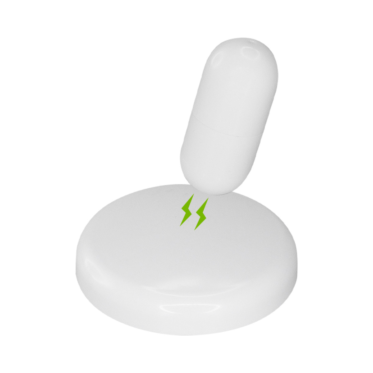 Destacador amarillo "Cápsula" blanca, sobre base plástica blanca. Cuenta con sistema imantado que sostiene la cápsula de pie sobre la base, estabilizándola como "mono porfiado". Amplia área de impresión tanto en la cápsula como en la base. Presentación en caja de regalo blanca. Importante: presionar la punta sobre papel por 3 segundos para que la tinta amarilla baje.
