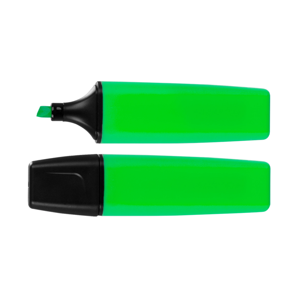 Destacador - Resaltador "HIGHLIGHTER" punta cincel 5mm, con cuerpo plástico plano de color sólido y tapa plástica negra, con amplia superficie para impresión de logo y mayor cantidad de tinta.
