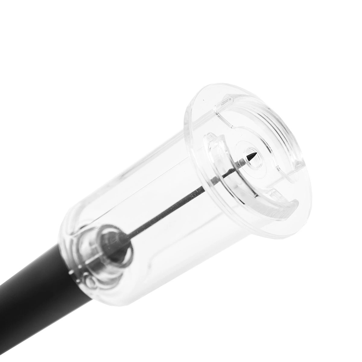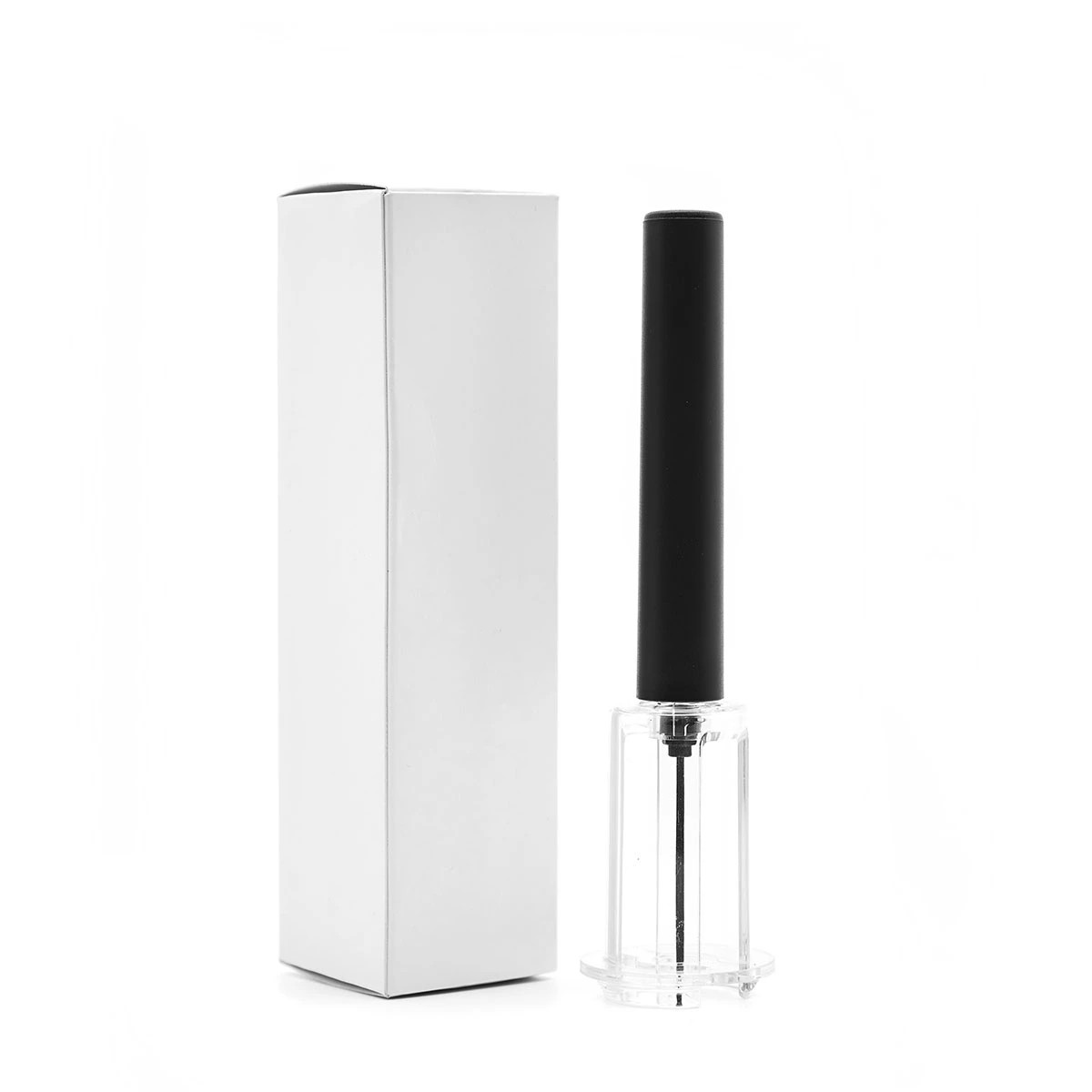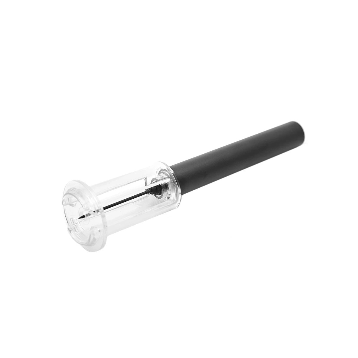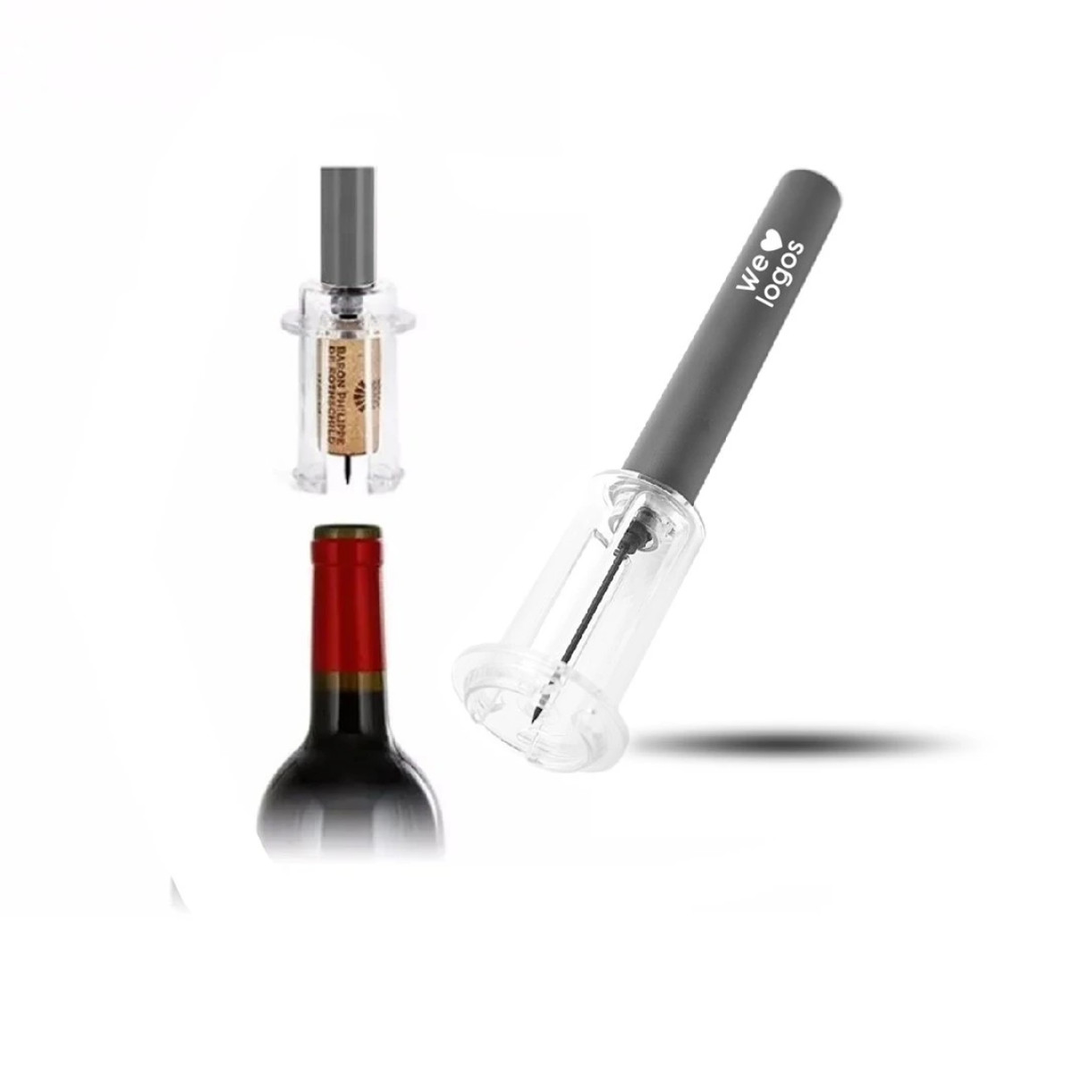 Sacacorchos neumático con caja contenedora. Se clava la aguja al corcho y se da presión al interior de la botella hasta que el corcho sale sin hacer fuerza.