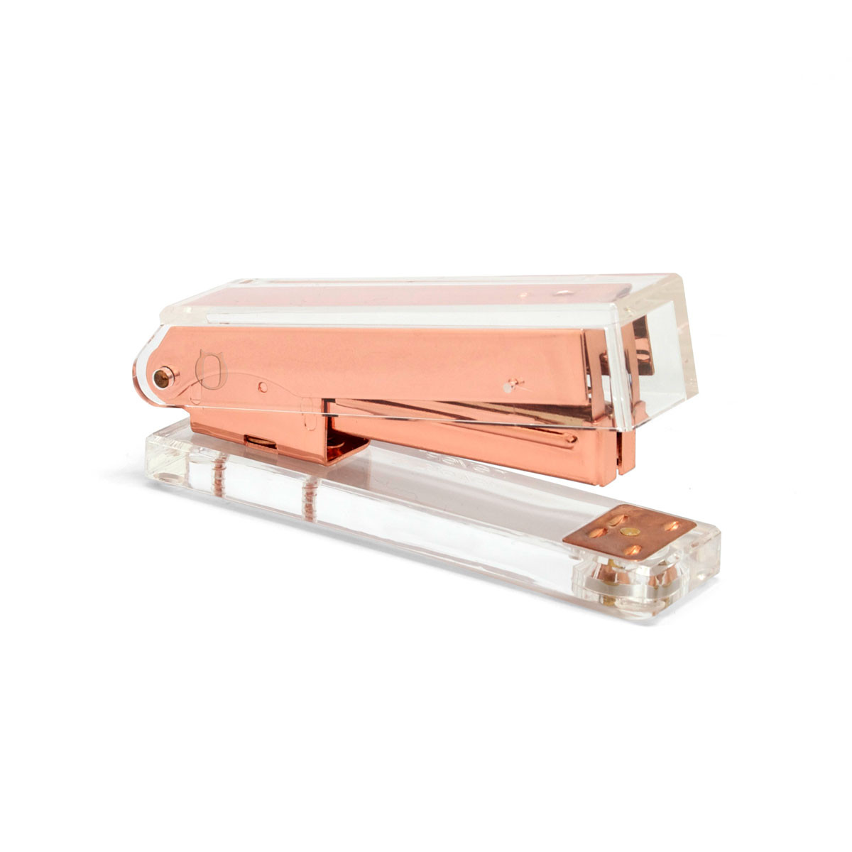 12,8 x 6 x 3,1 cm. Acrílico y metal. Engrapadora de escritorio que combina diseño y funcionalidad para el día a día. Para broches tamaño 21/6. Presentación en caja de regalo.