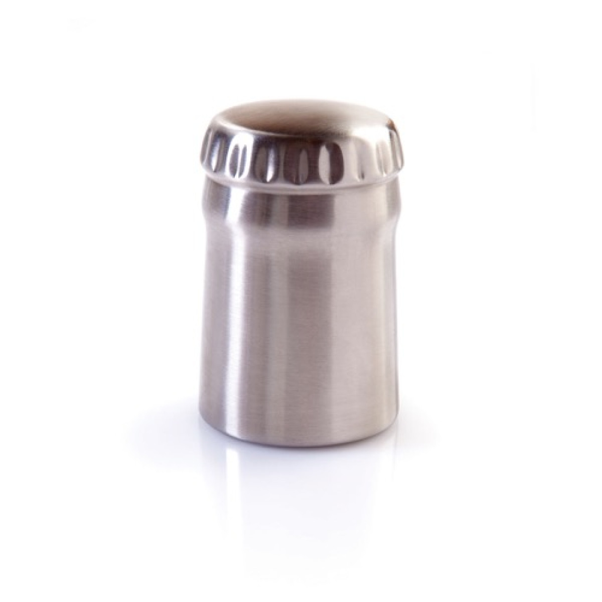 5,5 x 8 cm. Acero inoxidable. Práctico destapador. Posicionándolo en el pico y con una leve presión, se destapa la botella sin abollar la chapita. Gracias a un imán, la tapa queda intacta en su interior. Presentación en caja de regalo.