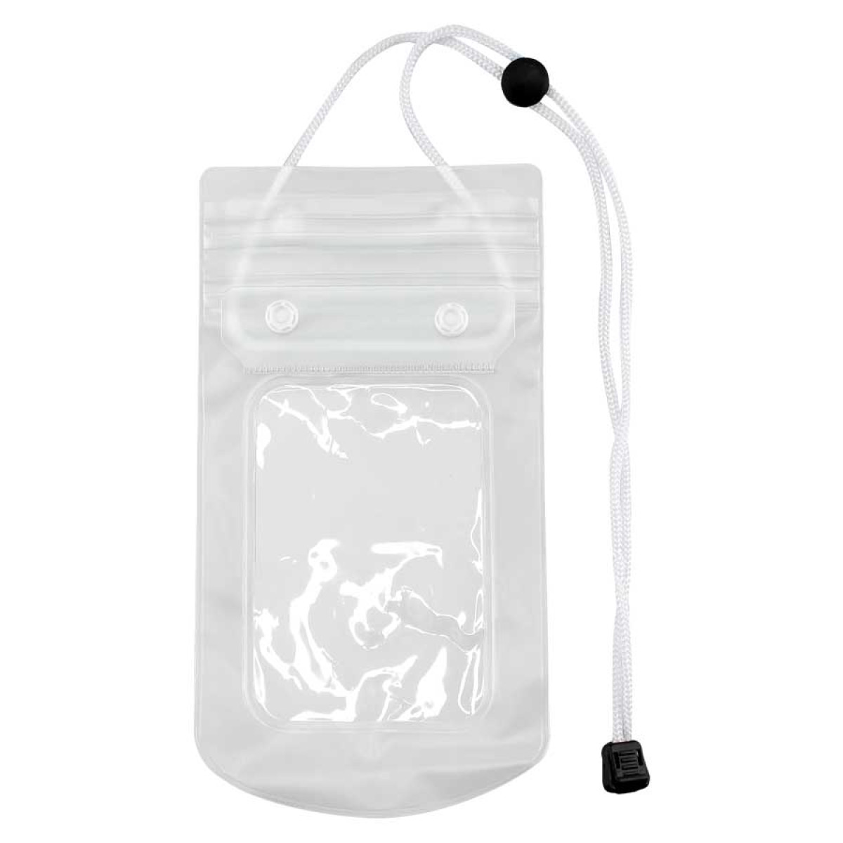 Guardatodo de PVC clear con colgador ajustable de cordón blanco. Incluye doble sistema de cierre: zipper doble y broches.
