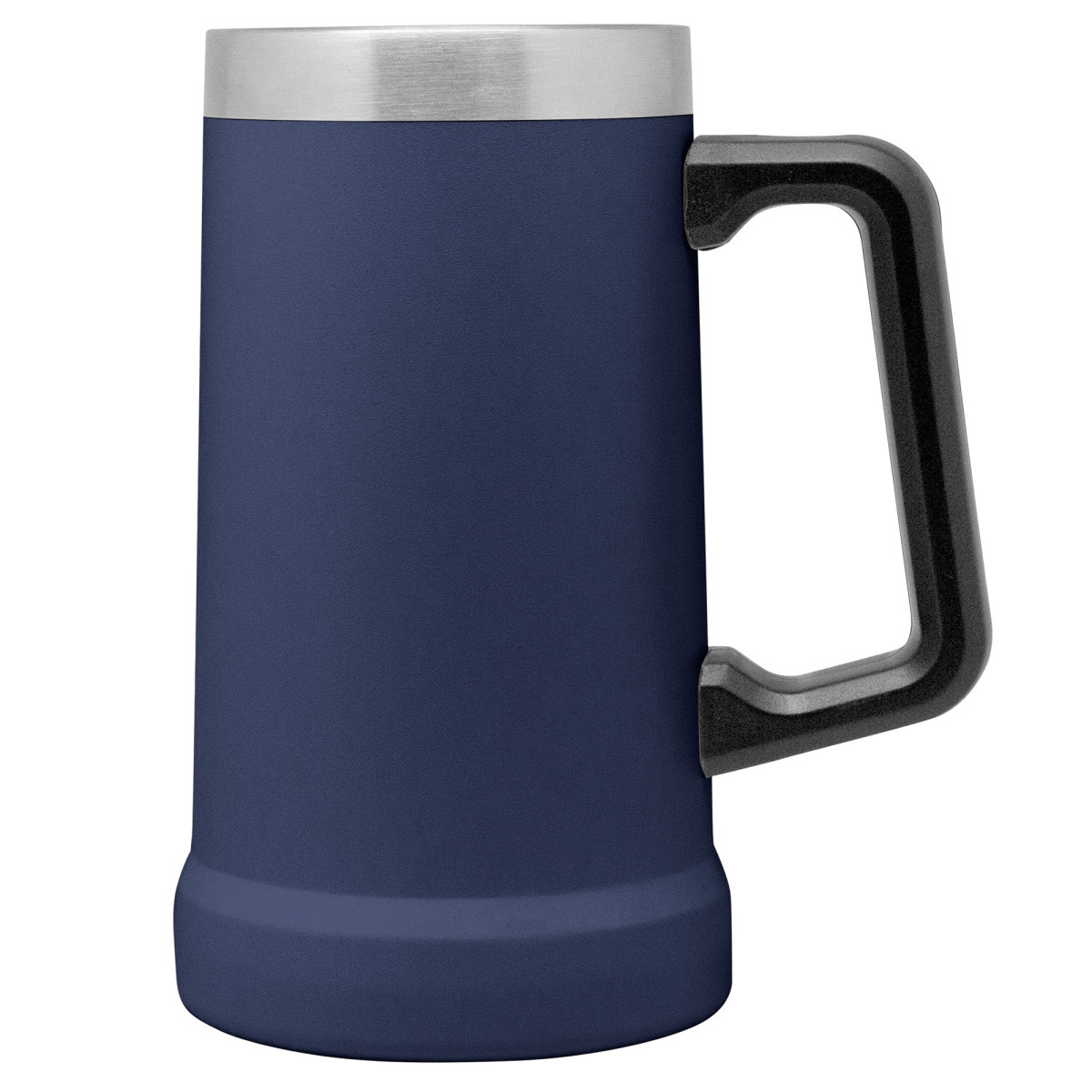 Disfruta tus bebidas frías por más tiempo Jarro cervecero doble pared, sellado al vacío. Interior en acero 304 y exterior en acero 201. Mango Plástico. Pintura Powder coat (pintura más duradera y resistente a la corrosión y el paso del tiempo). Medidas: 17 cm. x Ø 10 cm. (diámetro inferior) y Ø 8,5 cm. (diámetro superior)