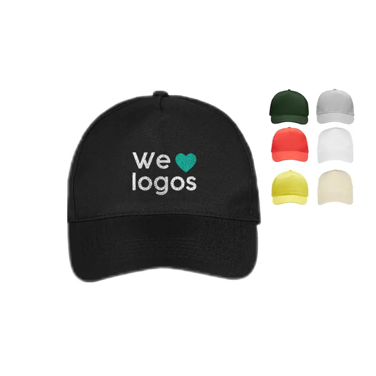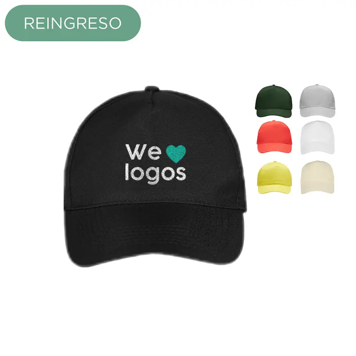 Gorro de 5 paneles 100% Polyester con cierre con velcro. Diámetro 58cm.