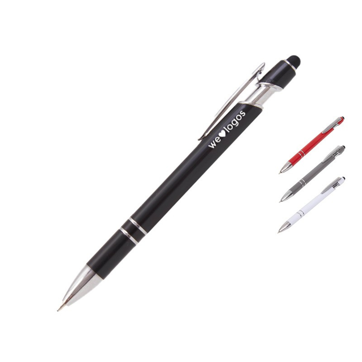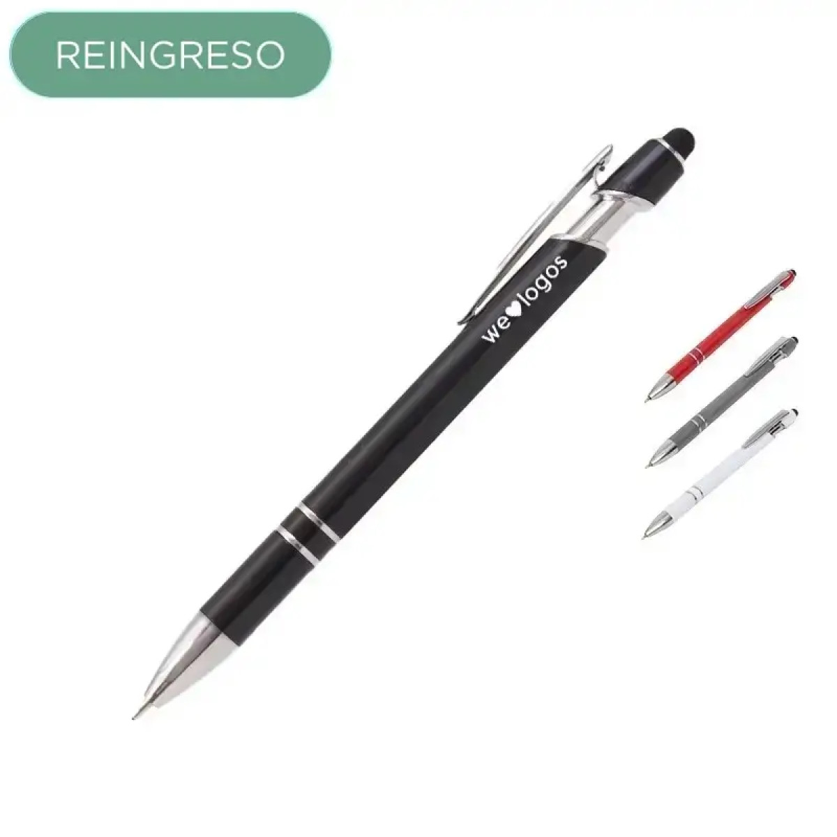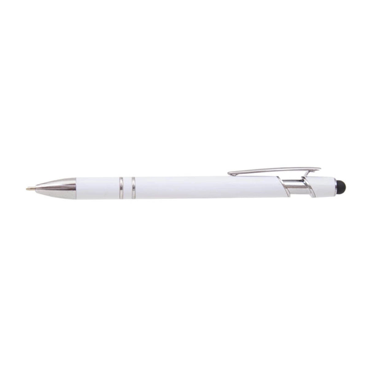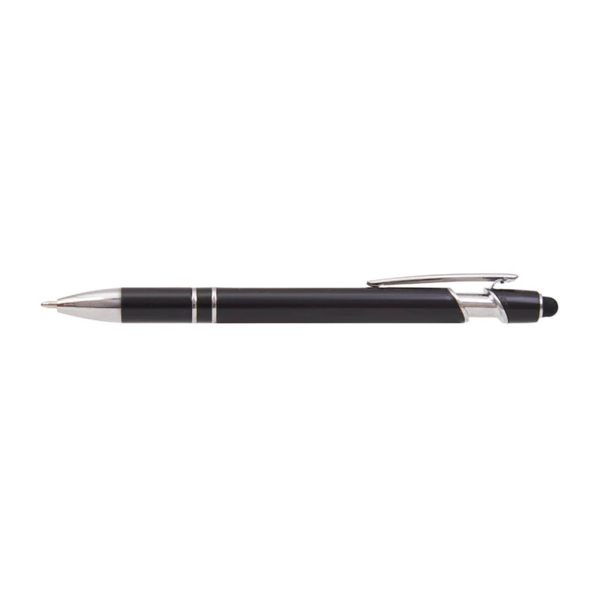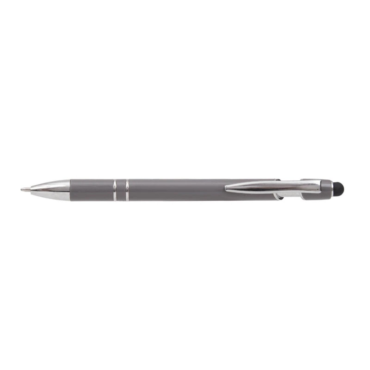 Lápiz de cuerpo sólido, realizado en ABS. Tinta de color azul. Apertura con con clip retractil. Posee touch para pantallas táctiles.