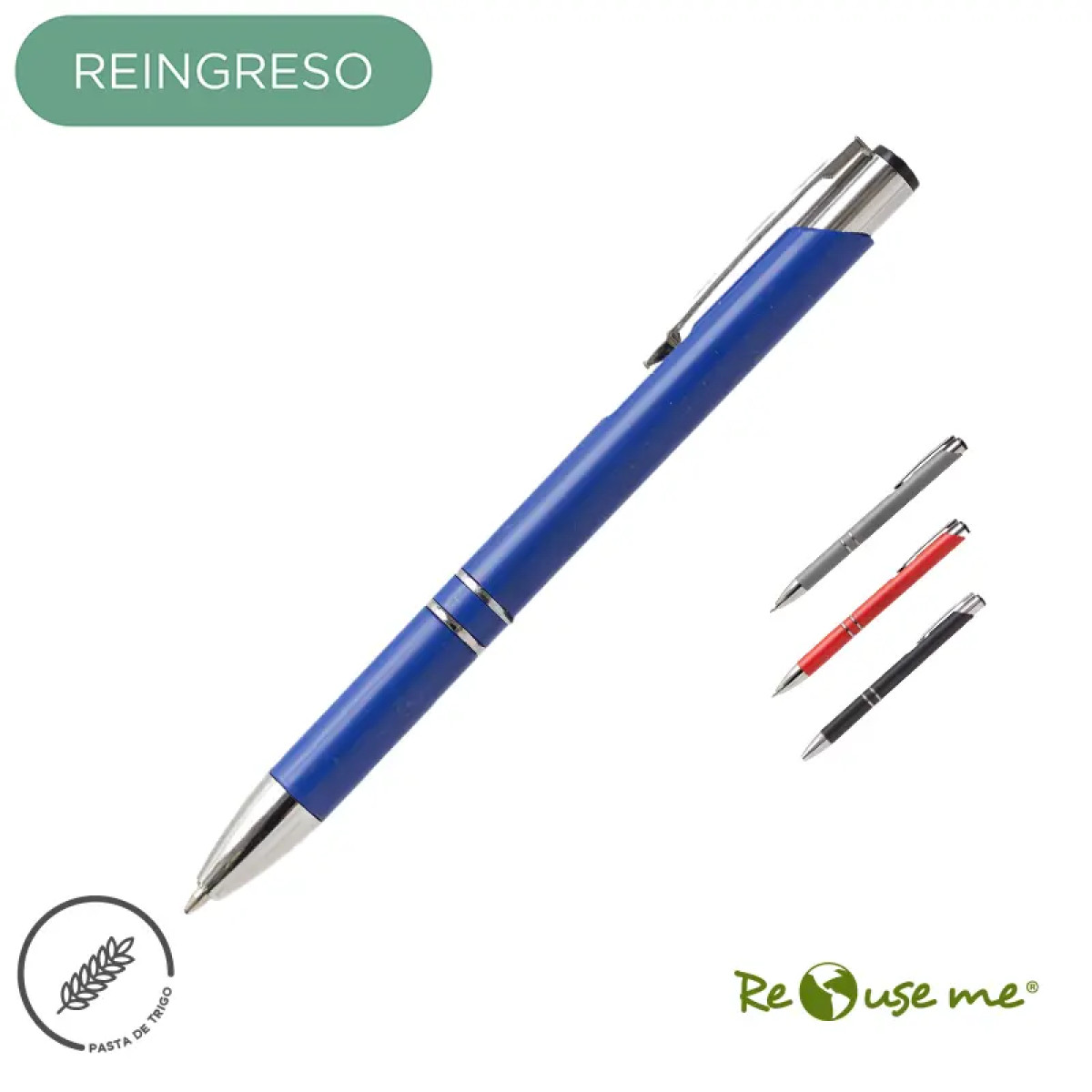 Lápiz confeccionado en Wheat Straw, pasta de tallo de trigo, un material sustentable que reduce el consumo de plásticos vírgenes. Los productos elaborados con este componente, son de fuentes naturales, y pueden tener un tono irregular debido a las diferencias naturales en el color y la textura del material. ver imagen. Tinta de color azul y apertura con sistema retráctil.