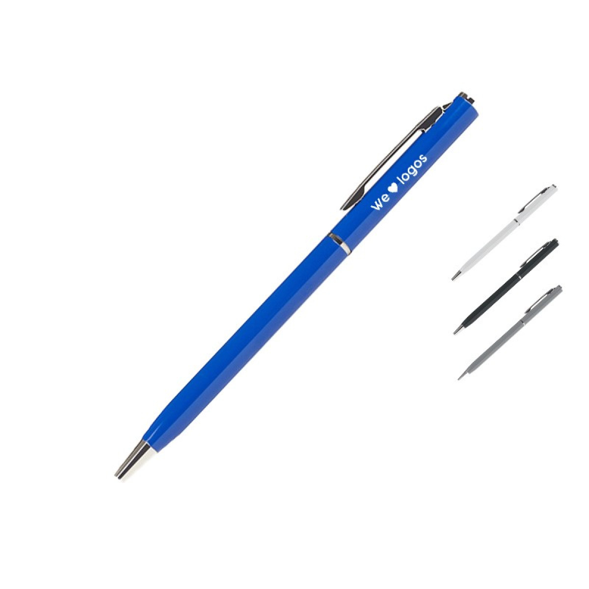 Lápiz de metal. Diseño elegante. Con clip. Apertura medio giro. Tinta azul