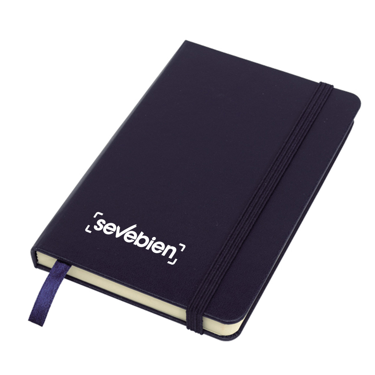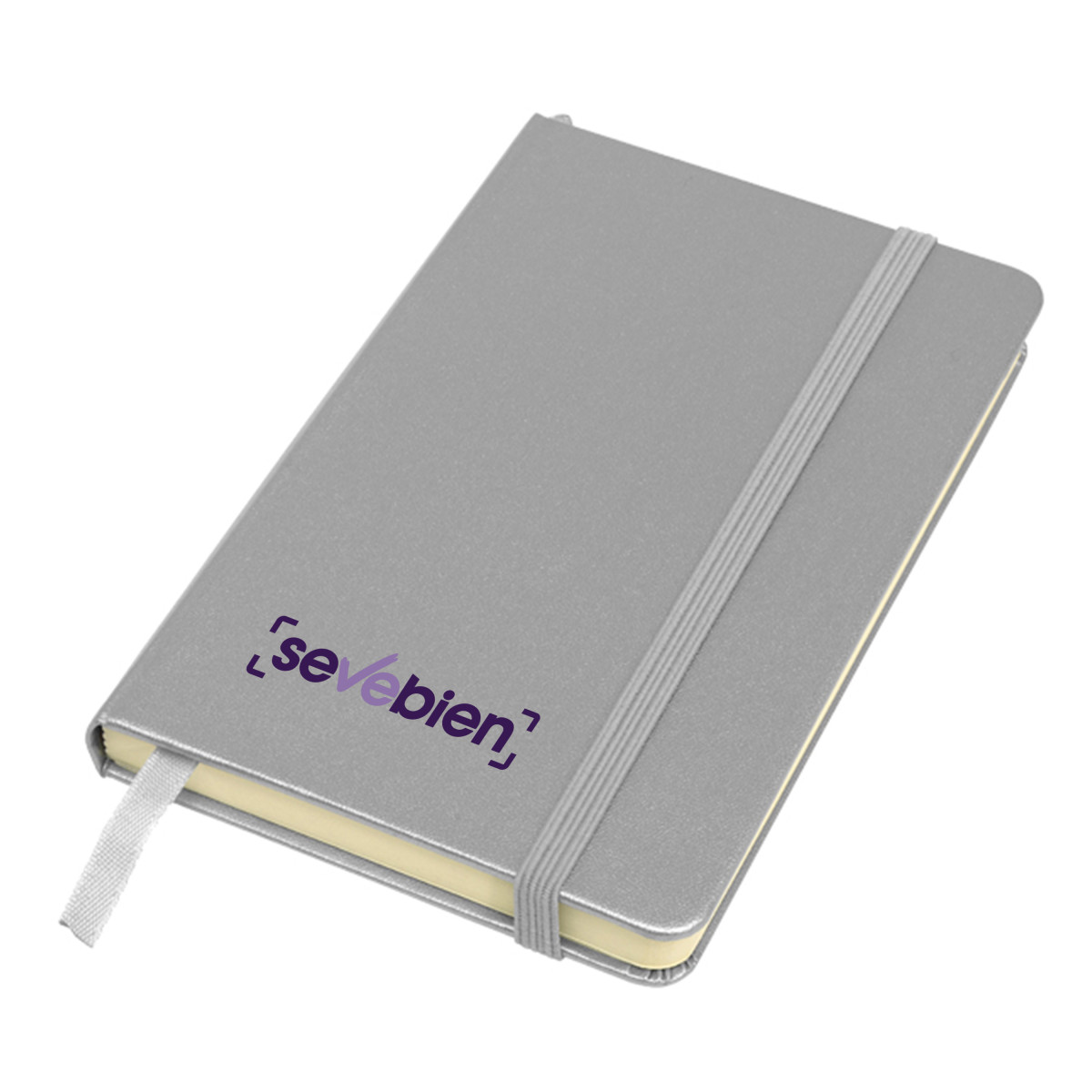 21 x 14 x 1,5 cm Cartón recubierto en poliuretano. 80 hojas rayadas.160 páginas.Separador de hojas en tela. Cierre con banda elástica. Bolsillo interior en la parte trasera de la libreta.
