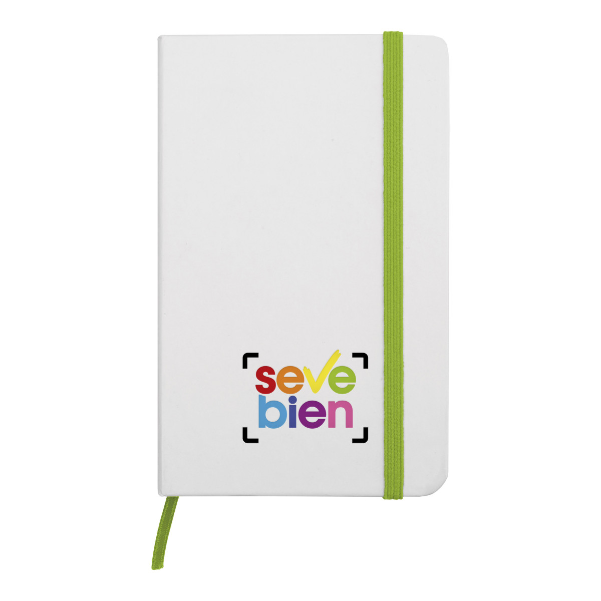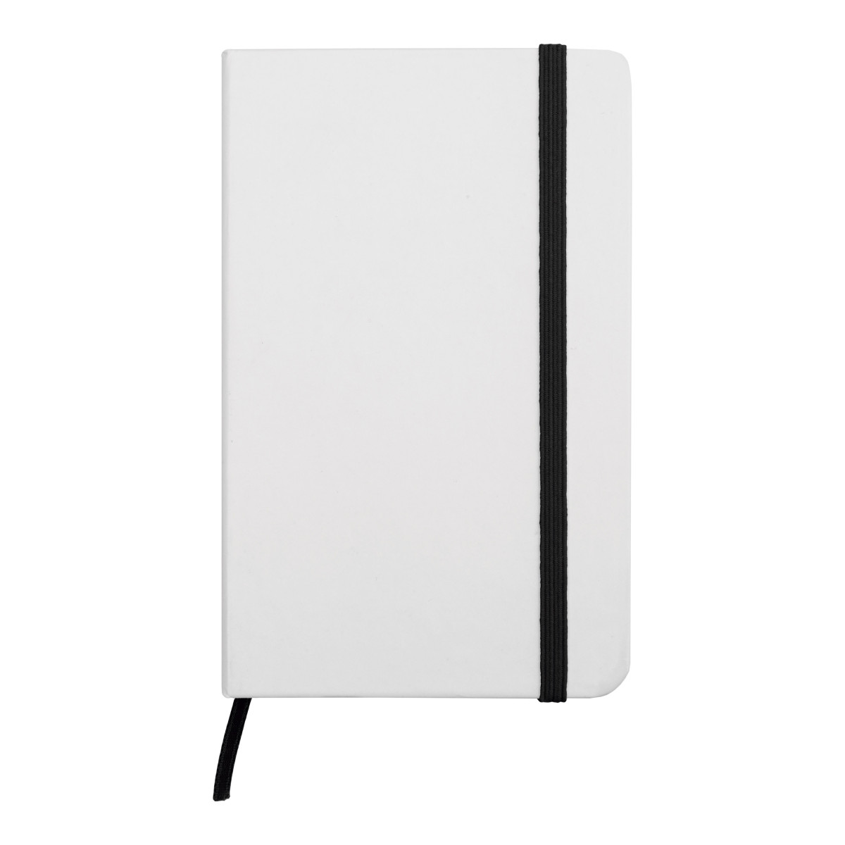 14,3 x 9,2 x 1,1 cm. Cartón. Libreta de tapa dura color blanco. Contiene 80 hojas rayadas, señalador y cierra con banda elástica del mismo color.